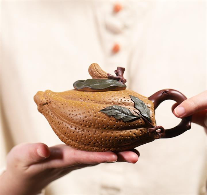 300cc原礦黃金段泥/綠泥多福多子茶壺POT8803