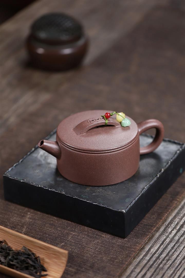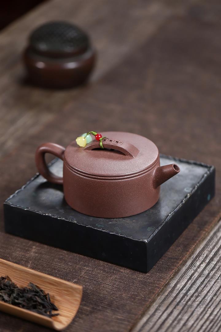 【泥料特點】砂土氣重,似淳實農民,日久使用,漸露鋒芒,養成變化,溫潤莊重。紫砂是壹種雙重氣孔結構的多孔性材質,氣孔微細,密度高。用紫砂壺沏茶,不失原味,且香不渙散,得茶之真香真味。紫砂使用越久,壺身色澤越發光亮照人,氣韻溫雅。紫砂壺長久使用器身會因撫摸擦拭,變得越發溫潤光澤。