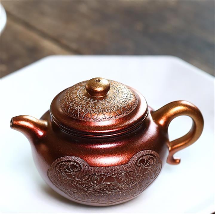 【泥料特點】砂土氣重,似淳實農民,日久使用,漸露鋒芒,養成變化,溫潤莊重。紫砂是壹種雙重氣孔結構的多孔性材質,氣孔微細,密度高。用紫砂壺沏茶,不失原味,且香不渙散,得茶之真香真味。紫砂使用越久,壺身色澤越發光亮照人,氣韻溫雅。紫砂壺長久使用器身會因撫摸擦拭,變得越發溫潤光澤。