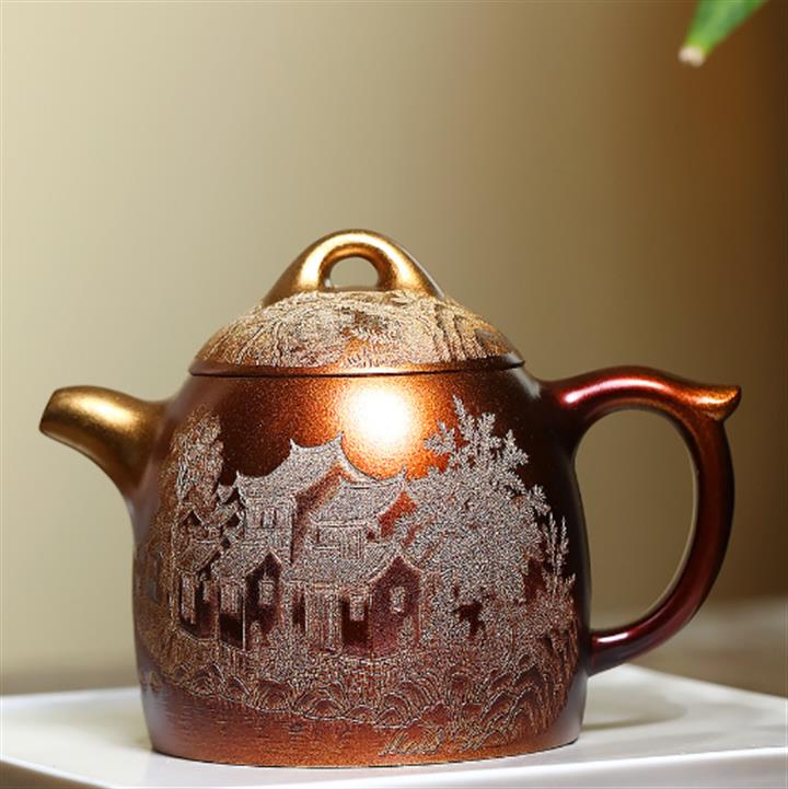 【作品介紹】此款壺形線條流暢,壺把,壺嘴,壺身壹氣呵成栩栩如生,是收藏把玩的好壺,泥料色澤古樸典雅,日久使用,漸露鋒芒,養成變化快,溫潤莊重,用其泡茶,使用的年代久,壺身就溫潤,泡出來的茶湯也就醇郁芳馨。