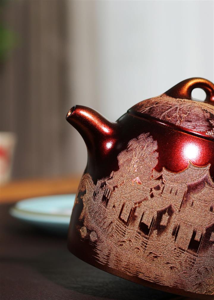 【泥料特點】砂土氣重,似淳實農民,日久使用,漸露鋒芒,養成變化,溫潤莊重。紫砂是壹種雙重氣孔結構的多孔性材質,氣孔微細,密度高。用紫砂壺沏茶,不失原味,且香不渙散,得茶之真香真味。紫砂使用越久,壺身色澤越發光亮照人,氣韻溫雅。紫砂壺長久使用器身會因撫摸擦拭,變得越發溫潤光澤。