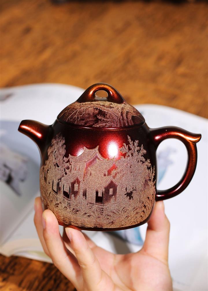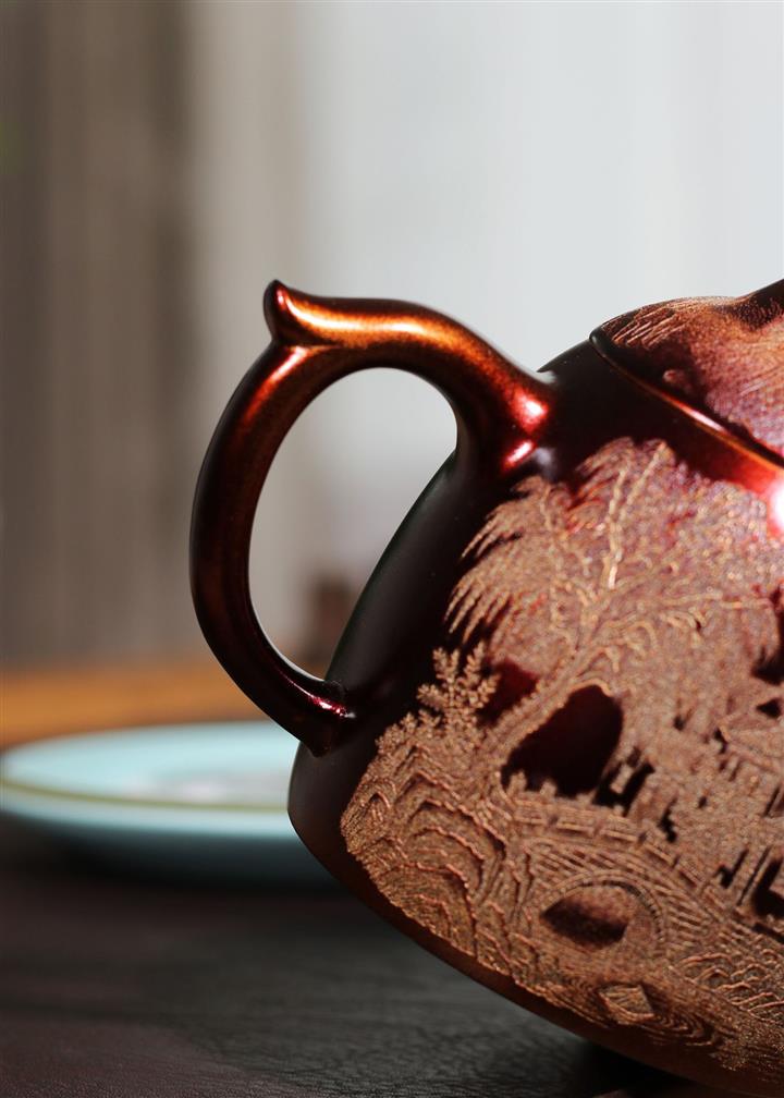 【作品介紹】此款壺形線條流暢,壺把,壺嘴,壺身壹氣呵成栩栩如生,是收藏把玩的好壺,泥料色澤古樸典雅,日久使用,漸露鋒芒,養成變化快,溫潤莊重,用其泡茶,使用的年代久,壺身就溫潤,泡出來的茶湯也就醇郁芳馨。