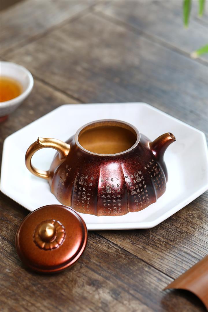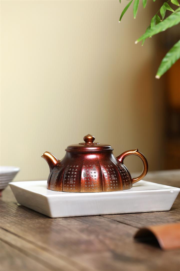 220cc原礦龍血砂貝殼燒百福景舟石瓢茶壺POT8835