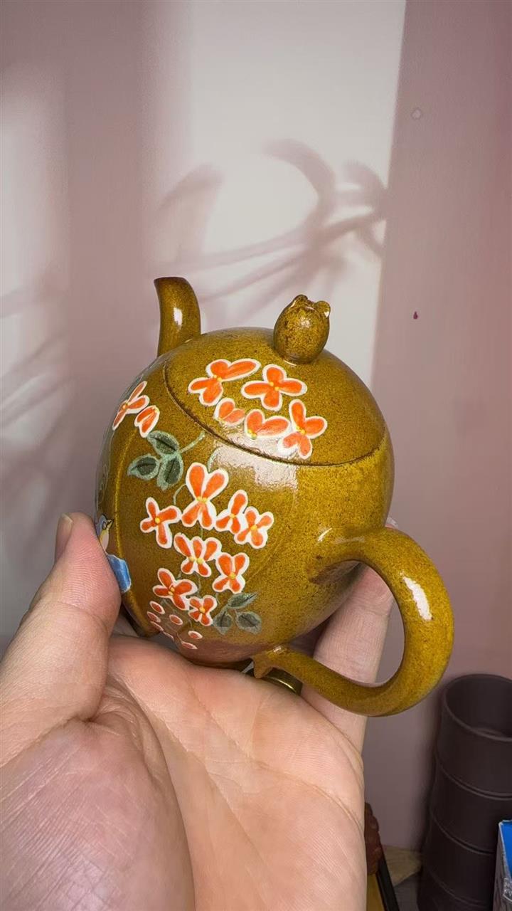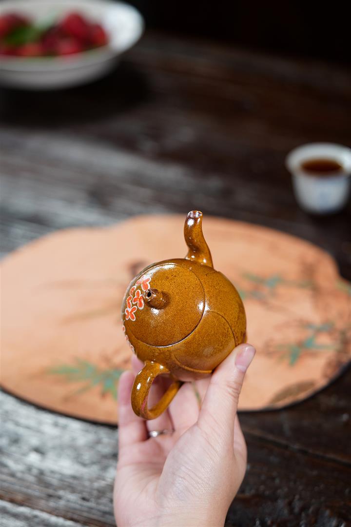 460cc原礦石黃彩繪笑櫻茶壺POT8856