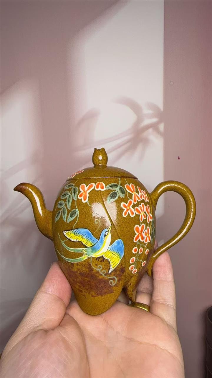 240cc原礦石黃彩繪雙龍潘壺茶壺POT8863