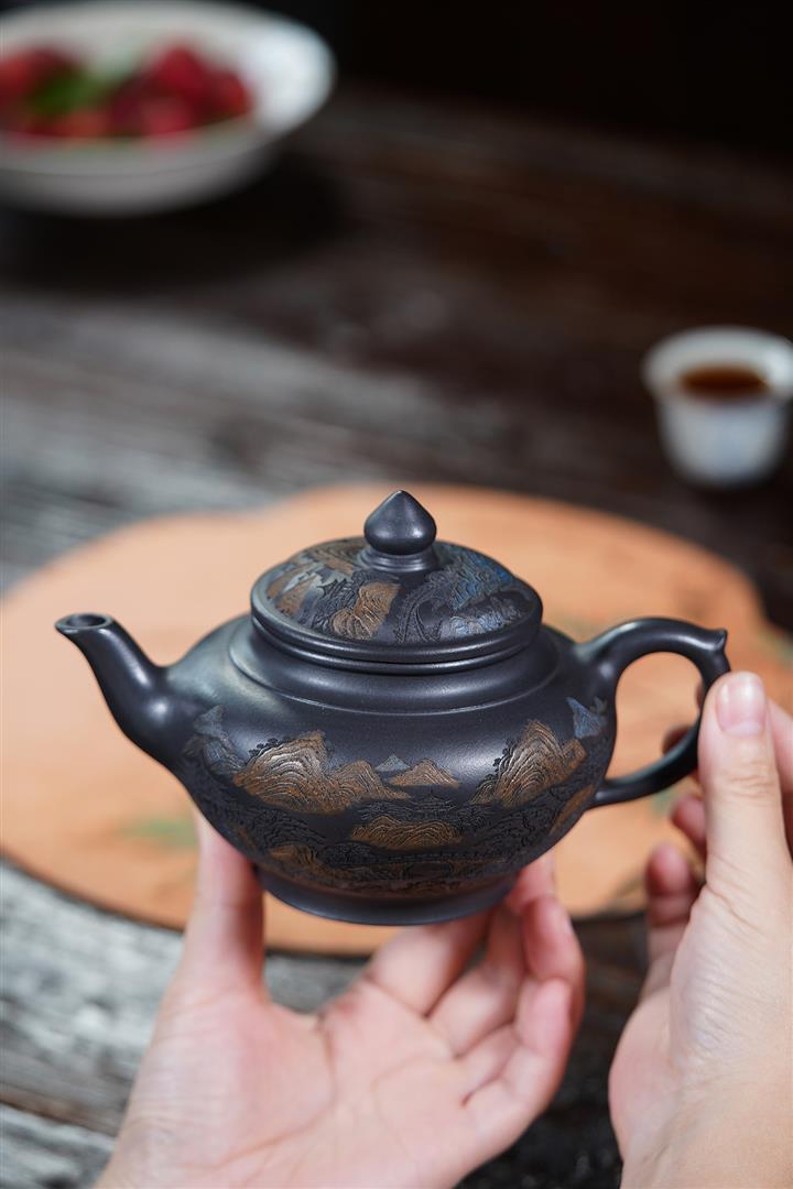 【作品介紹】此款壺形線條流暢,壺把,壺嘴,壺身壹氣呵成栩栩如生,是收藏把玩的好壺,泥料色澤古樸典雅,日久使用,漸露鋒芒,養成變化快,溫潤莊重,用其泡茶,使用的年代久,壺身就溫潤,泡出來的茶湯也就醇郁芳馨。