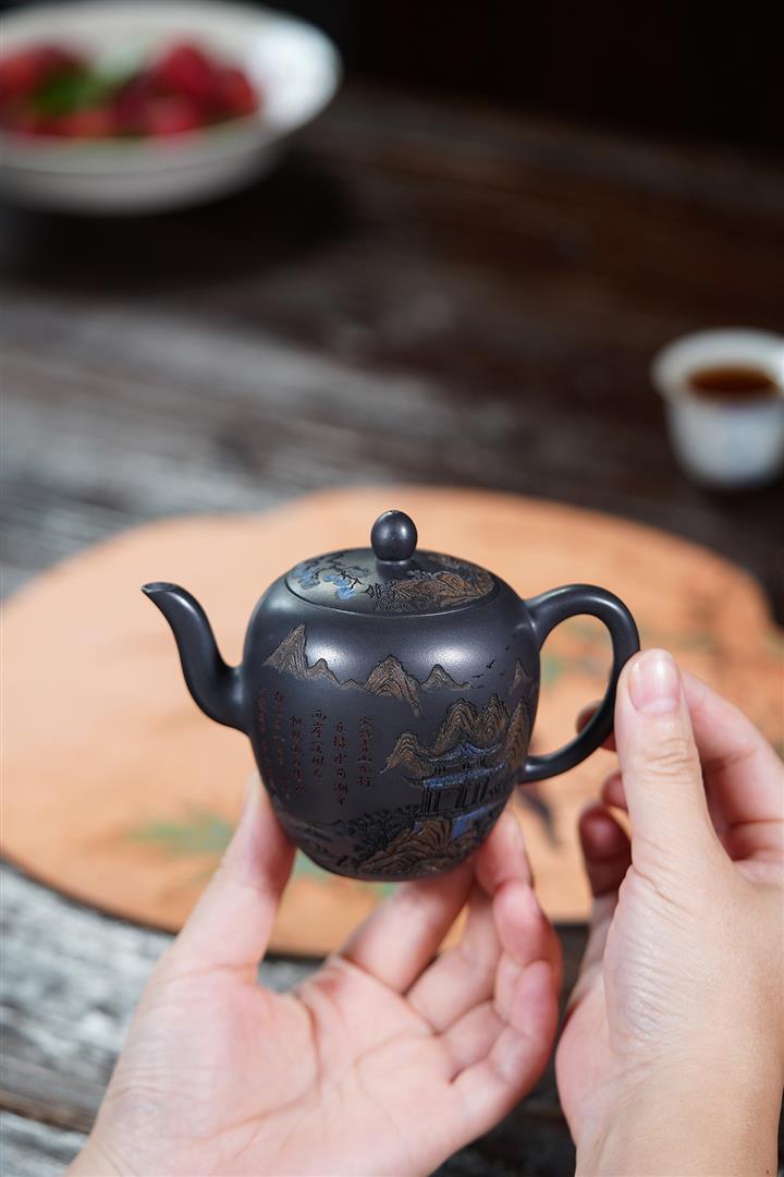 【作品介紹】此款壺形線條流暢,壺把,壺嘴,壺身壹氣呵成栩栩如生,是收藏把玩的好壺,泥料色澤古樸典雅,日久使用,漸露鋒芒,養成變化快,溫潤莊重,用其泡茶,使用的年代久,壺身就溫潤,泡出來的茶湯也就醇郁芳馨。