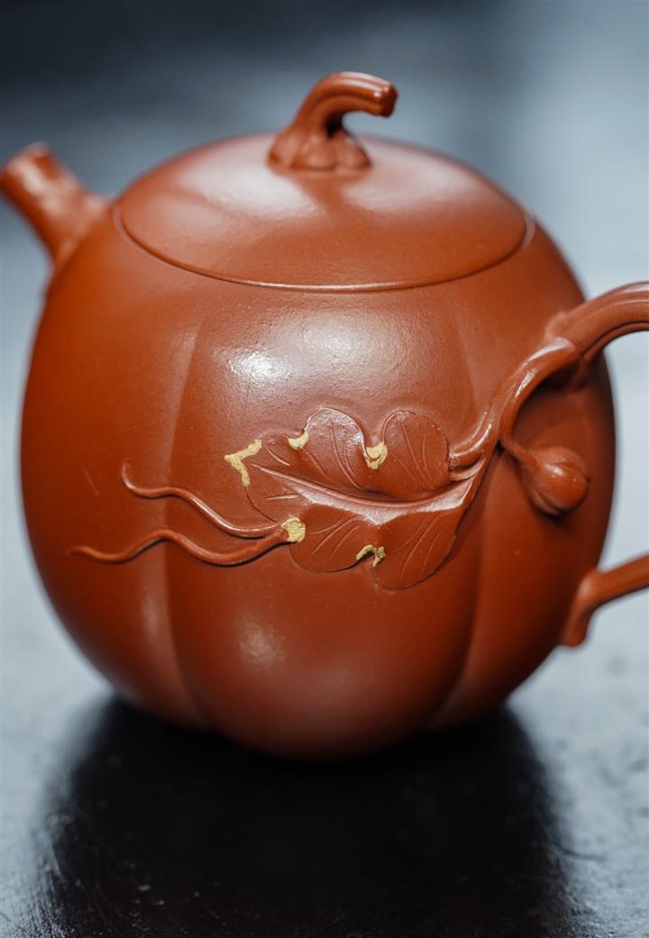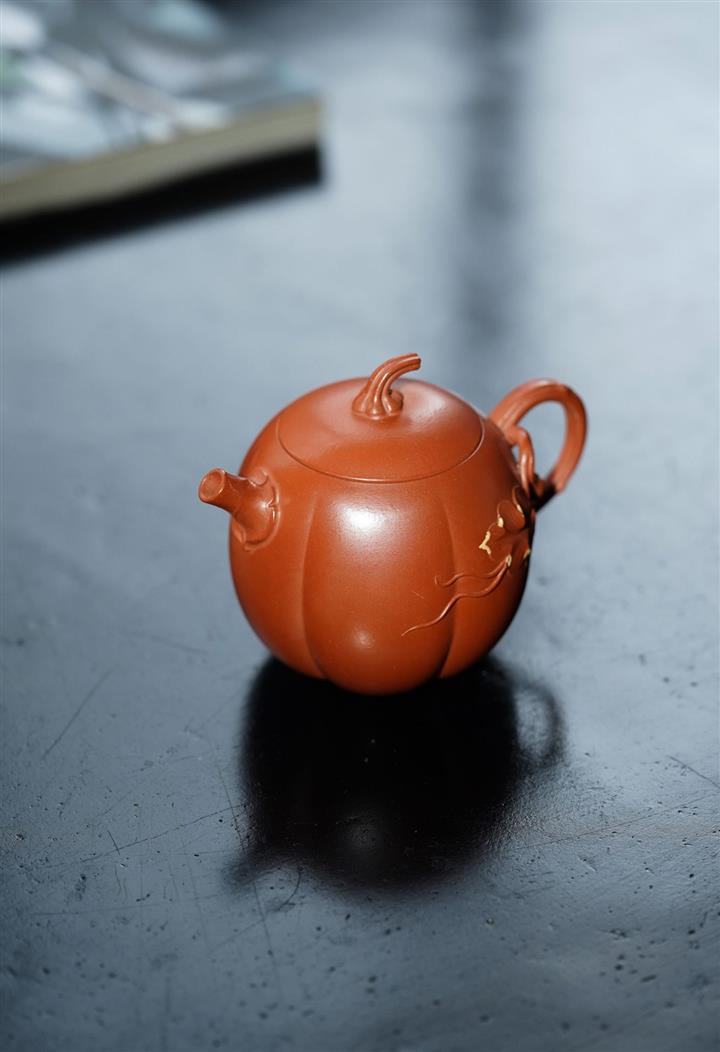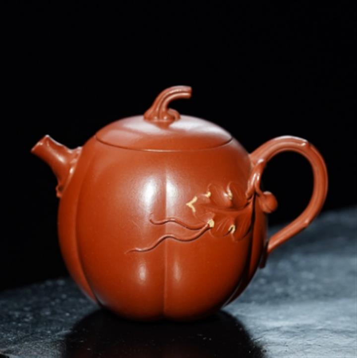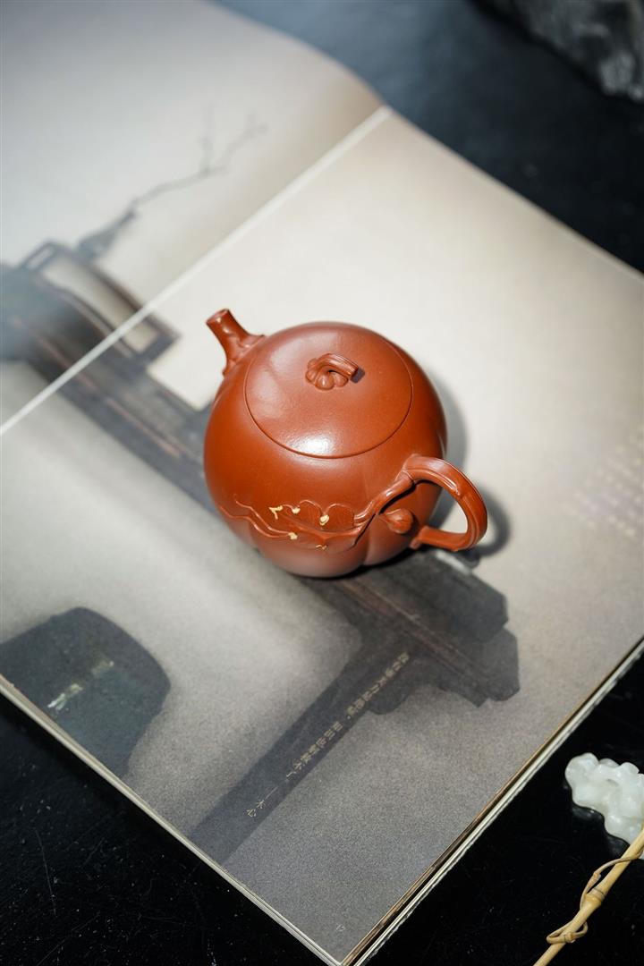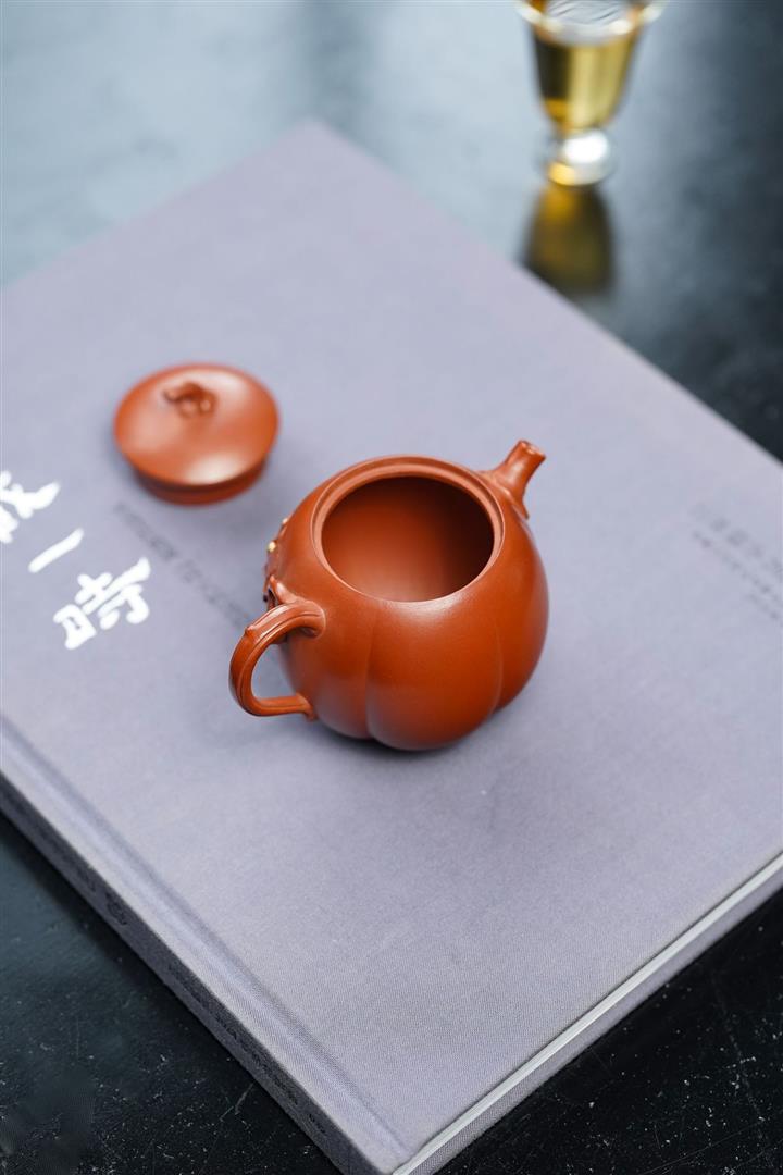 220cc原礦大紅袍雙色雙線竹鼓茶壺POT8865