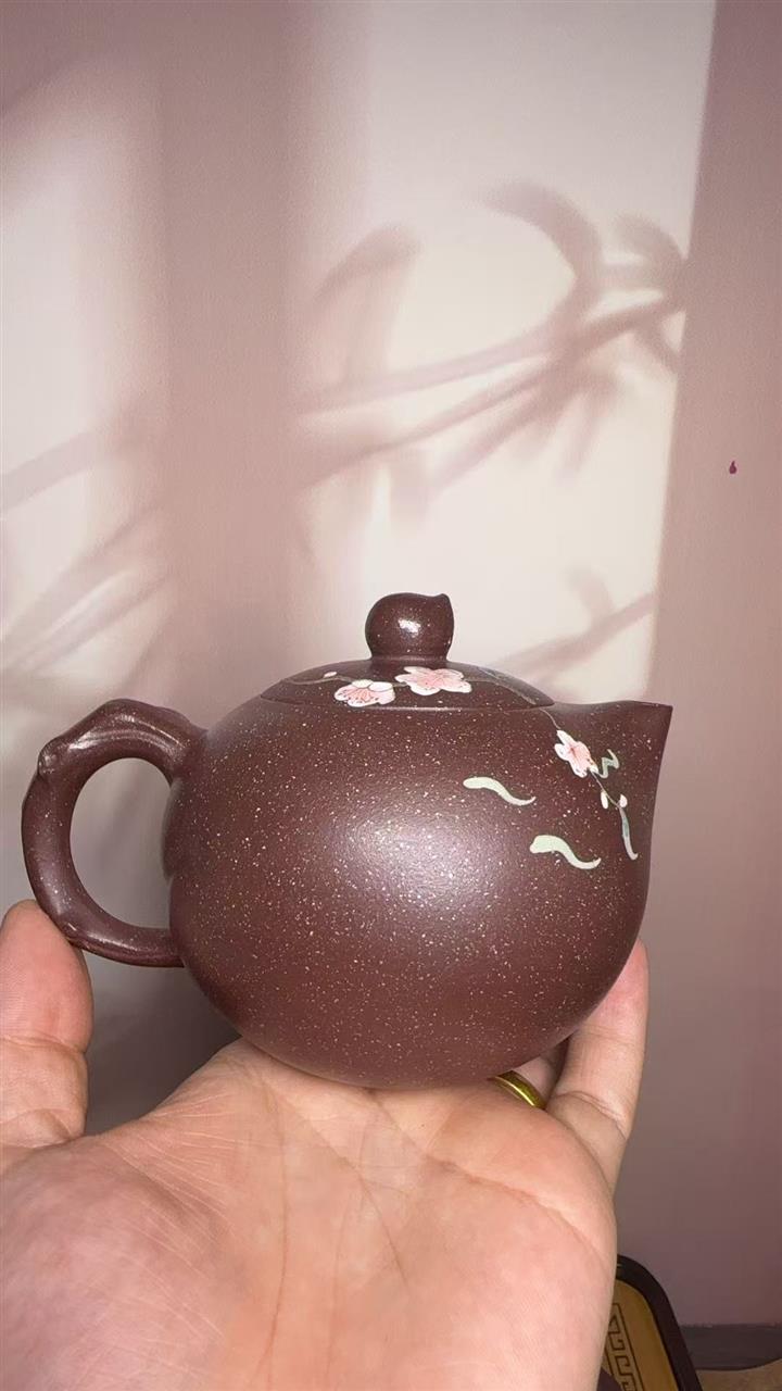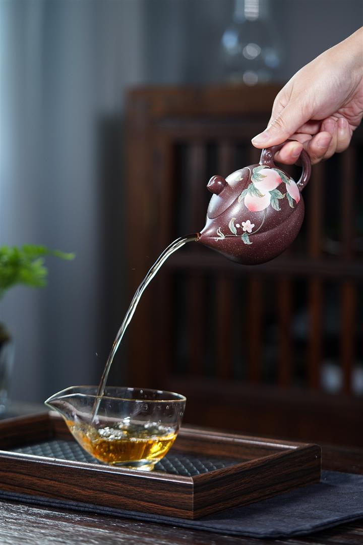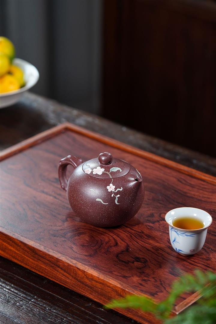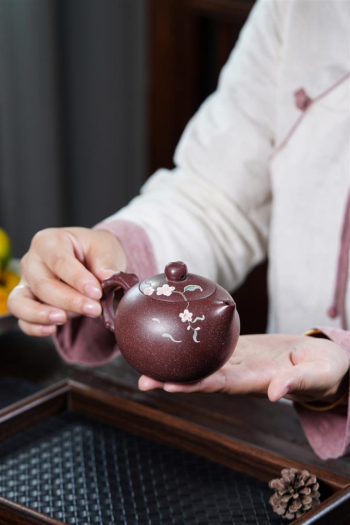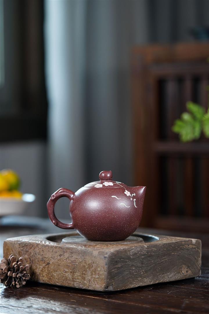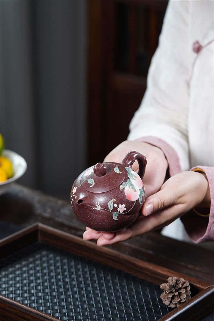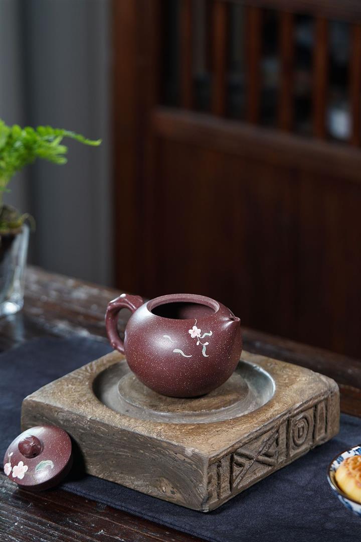 【泥料特點】砂土氣重,似淳實農民,日久使用,漸露鋒芒,養成變化,溫潤莊重。紫砂是壹種雙重氣孔結構的多孔性材質,氣孔微細,密度高。用紫砂壺沏茶,不失原味,且香不渙散,得茶之真香真味。紫砂使用越久,壺身色澤越發光亮照人,氣韻溫雅。紫砂壺長久使用器身會因撫摸擦拭,變得越發溫潤光澤。