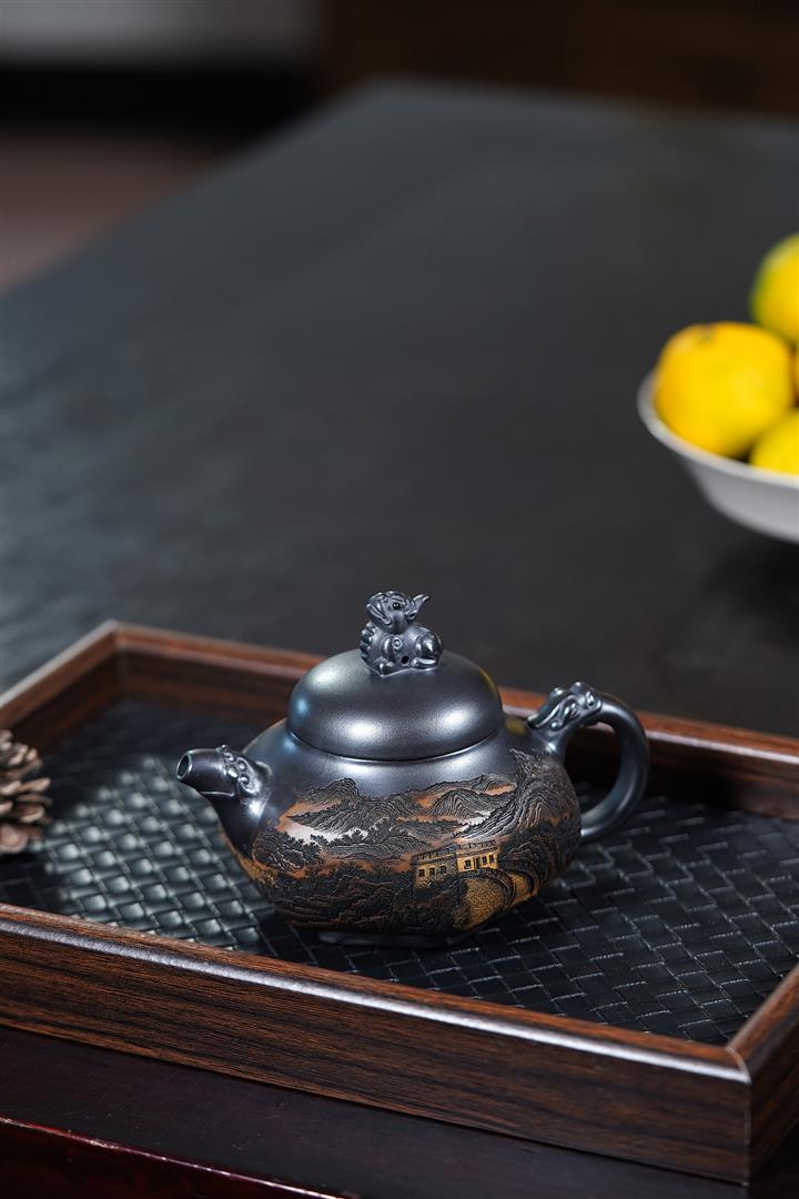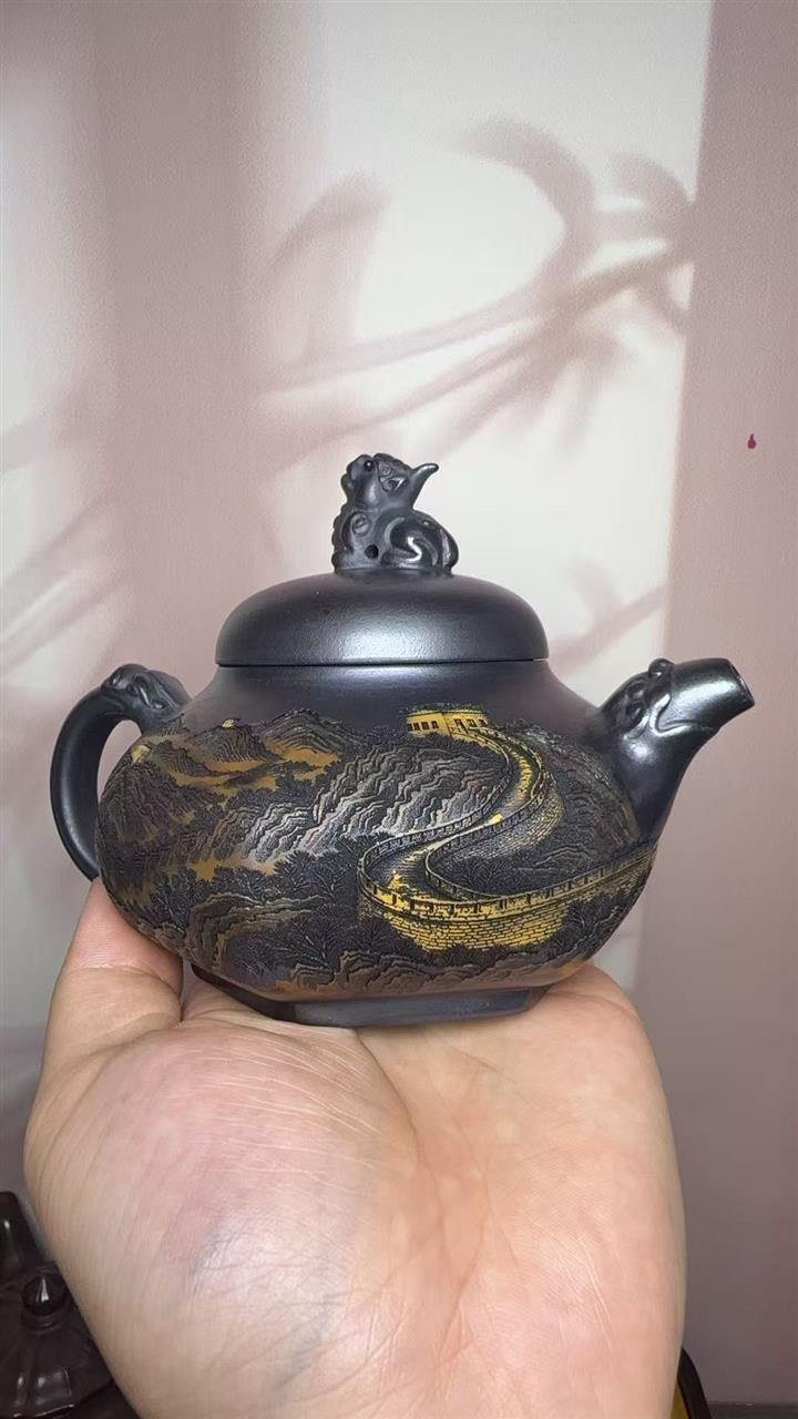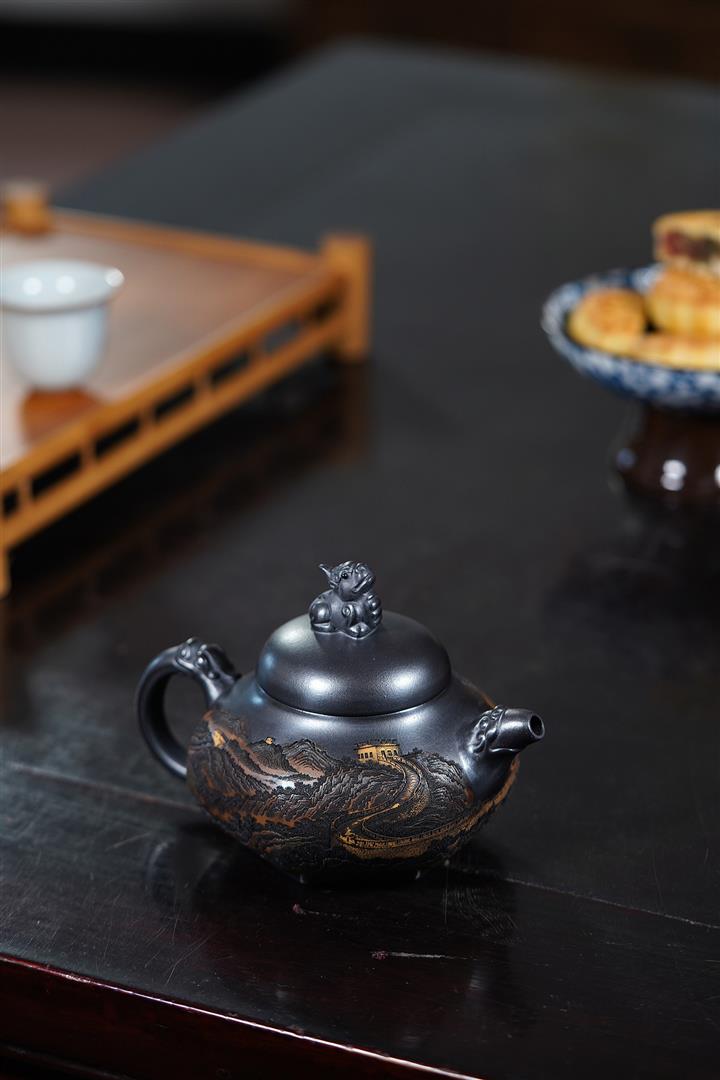 【作品介紹】此款壺形線條流暢,壺把,壺嘴,壺身壹氣呵成栩栩如生,是收藏把玩的好壺,泥料色澤古樸典雅,日久使用,漸露鋒芒,養成變化快,溫潤莊重,用其泡茶,使用的年代久,壺身就溫潤,泡出來的茶湯也就醇郁芳馨。