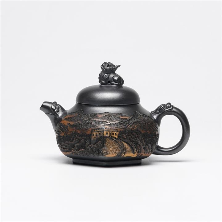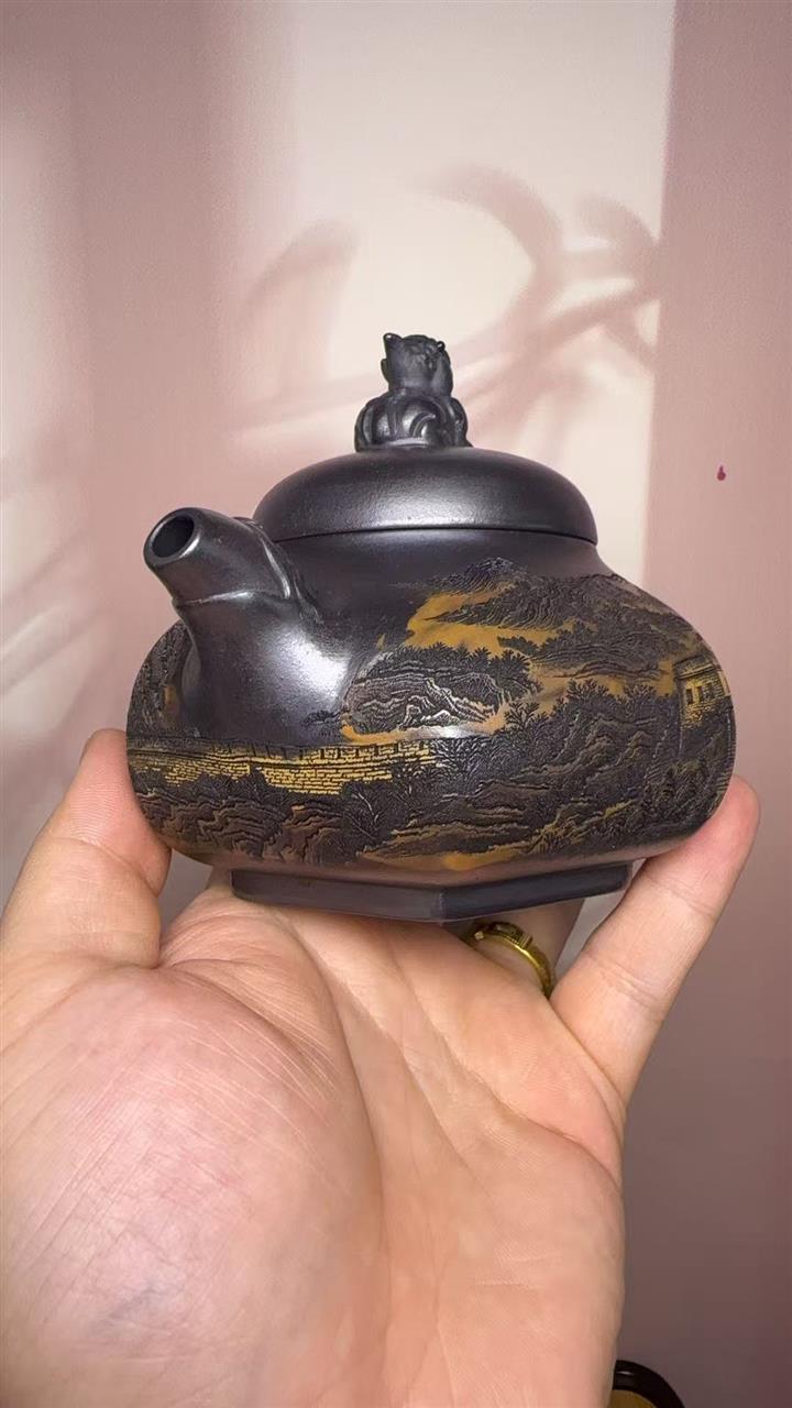 100cc原礦朱泥焐灰童趣茶壺POT8866