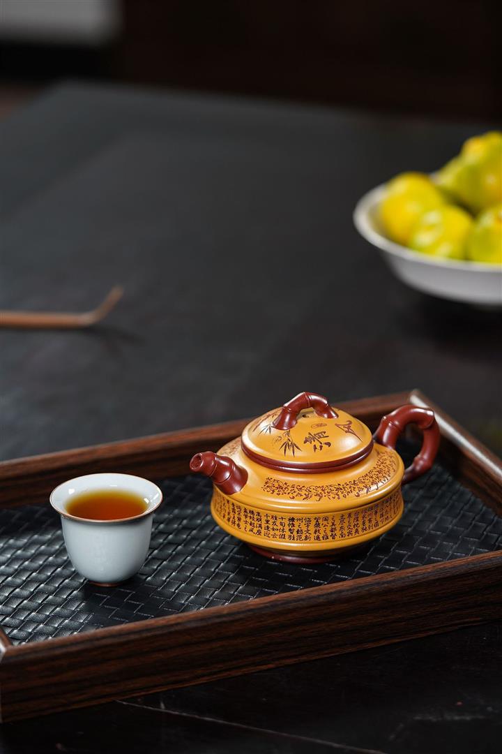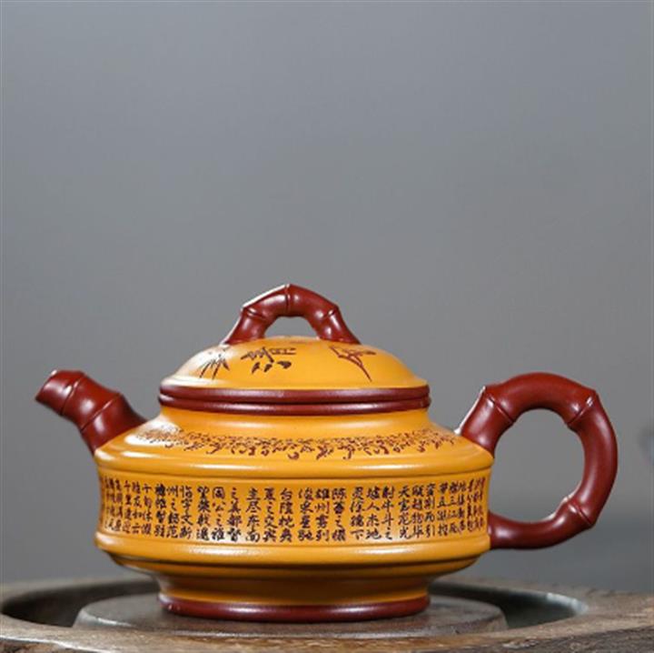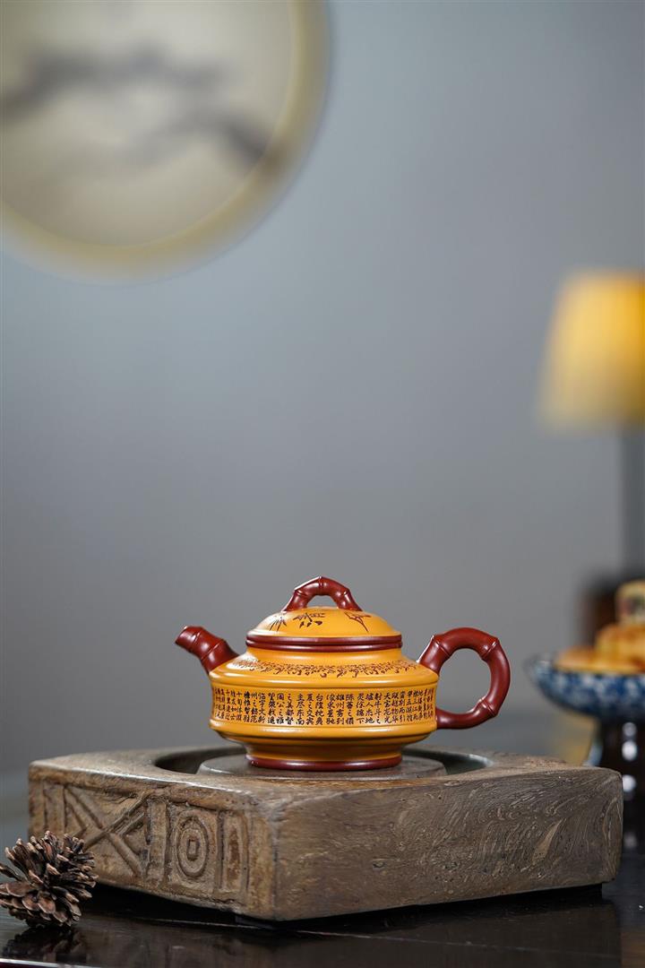 220cc原礦大紅袍雙色雙線竹鼓茶壺POT8865