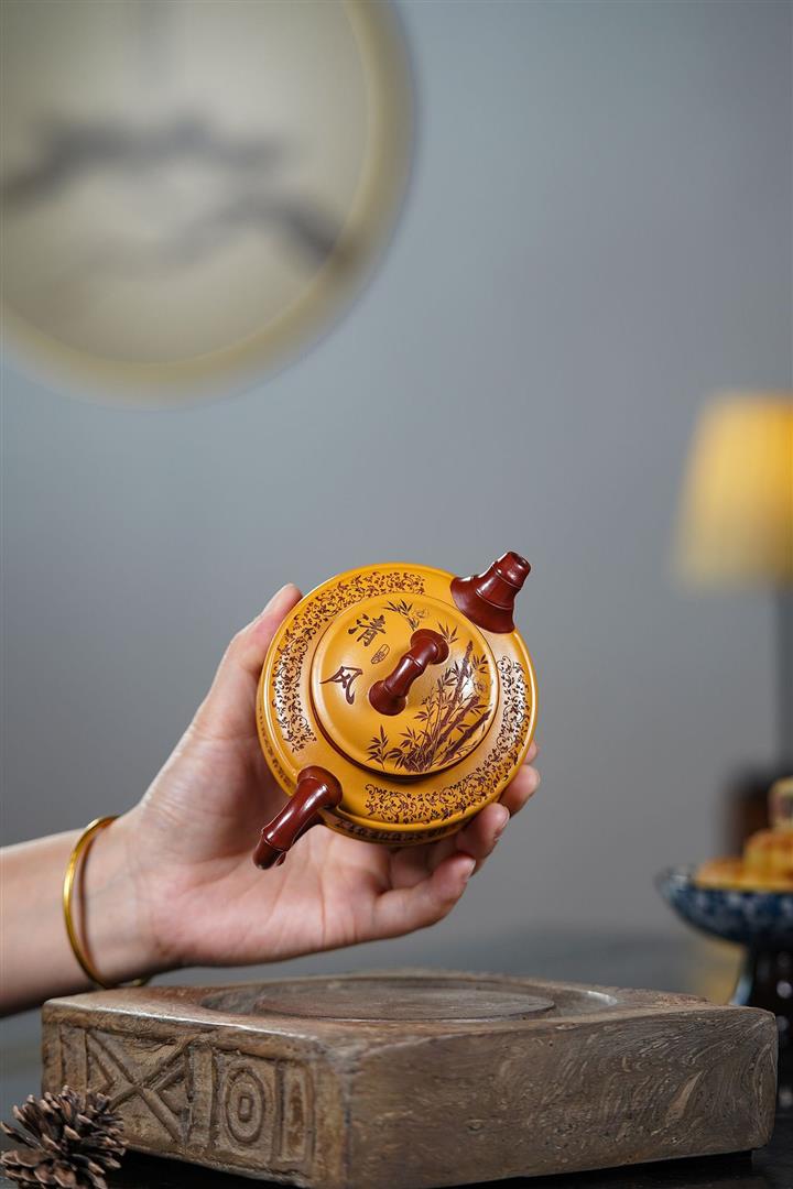 【泥料特點】砂土氣重,似淳實農民,日久使用,漸露鋒芒,養成變化,溫潤莊重。紫砂是壹種雙重氣孔結構的多孔性材質,氣孔微細,密度高。用紫砂壺沏茶,不失原味,且香不渙散,得茶之真香真味。紫砂使用越久,壺身色澤越發光亮照人,氣韻溫雅。紫砂壺長久使用器身會因撫摸擦拭,變得越發溫潤光澤。