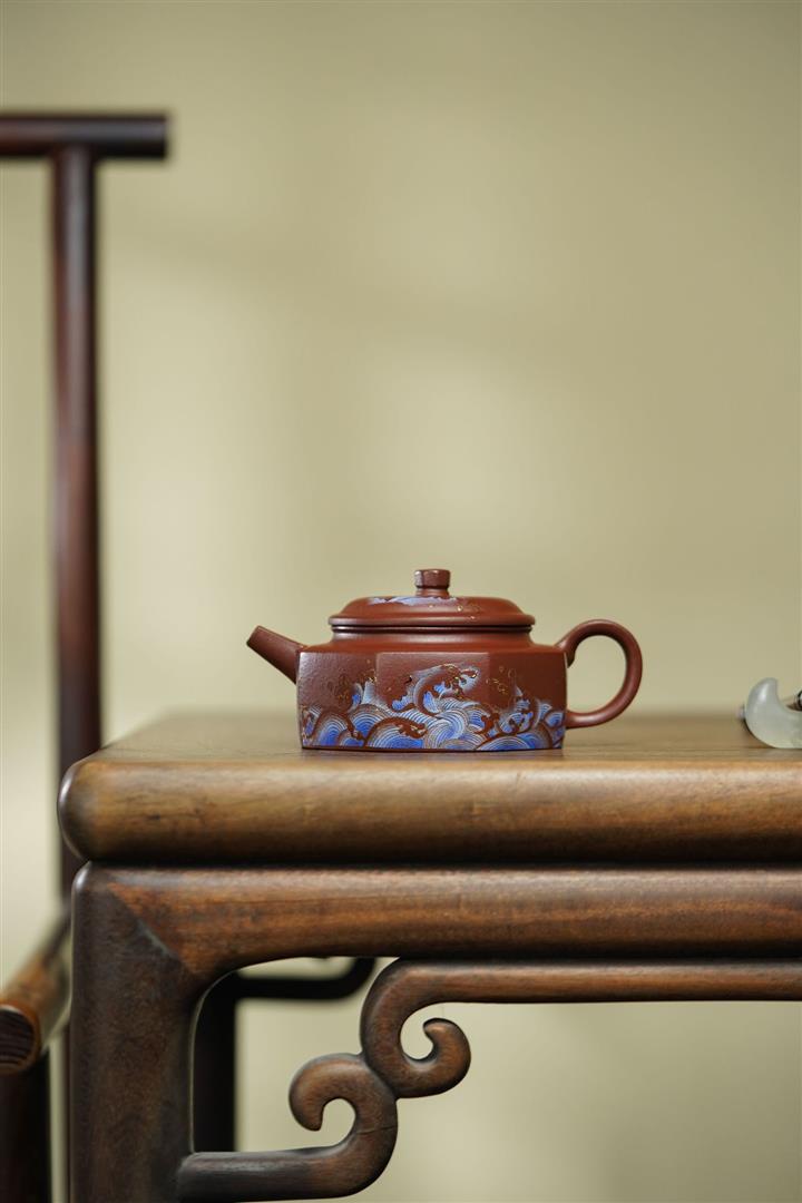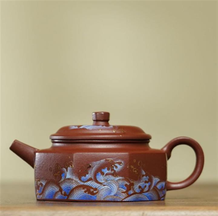 230cc原礦石黃泥彩繪六方潘壺茶壺POT8877
