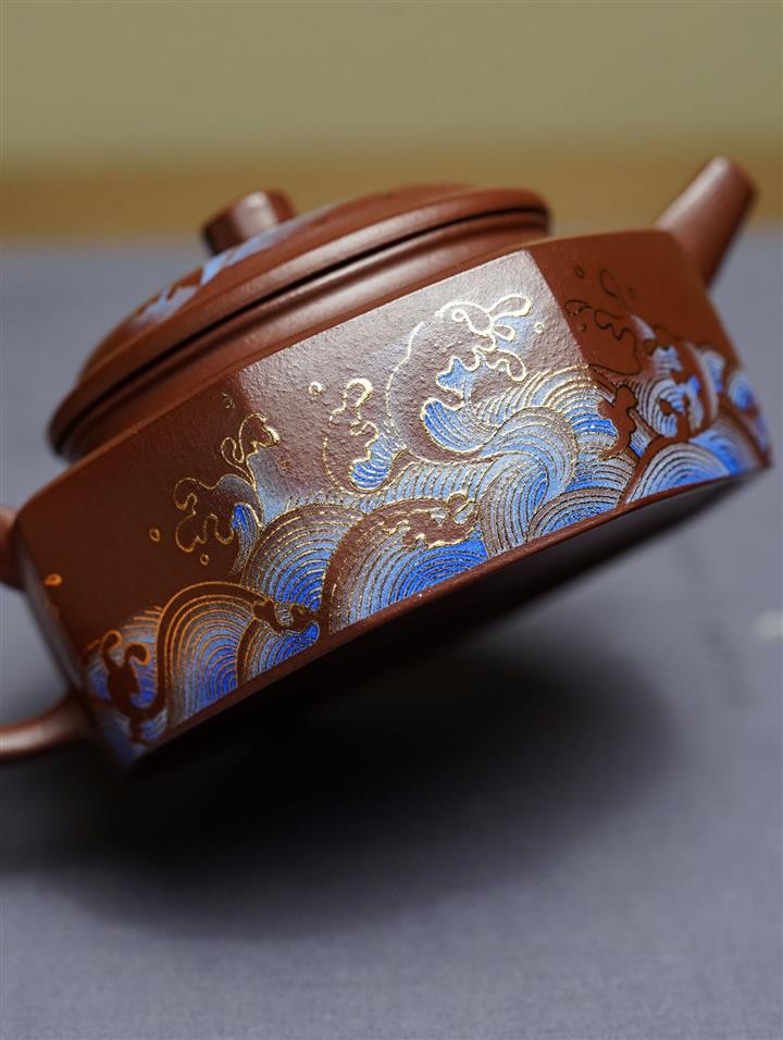 300cc 原礦龍血砂彩繪牛蓋德鐘茶壺POT8876