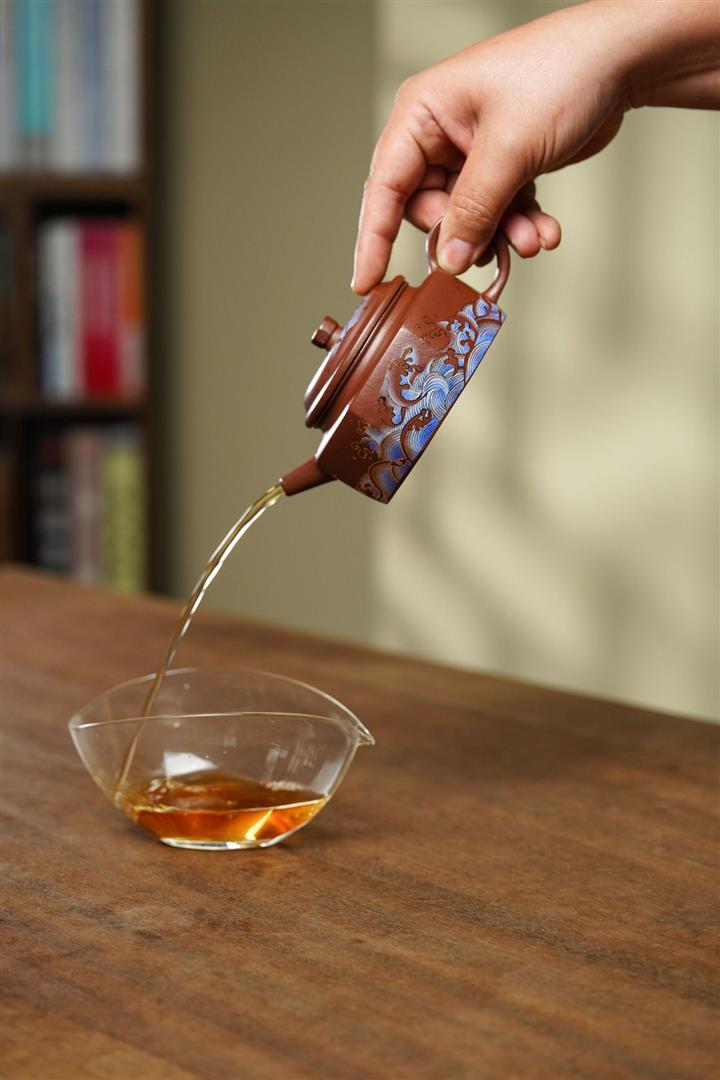 【泥料特點】砂土氣重,似淳實農民,日久使用,漸露鋒芒,養成變化,溫潤莊重。紫砂是壹種雙重氣孔結構的多孔性材質,氣孔微細,密度高。用紫砂壺沏茶,不失原味,且香不渙散,得茶之真香真味。紫砂使用越久,壺身色澤越發光亮照人,氣韻溫雅。紫砂壺長久使用器身會因撫摸擦拭,變得越發溫潤光澤。