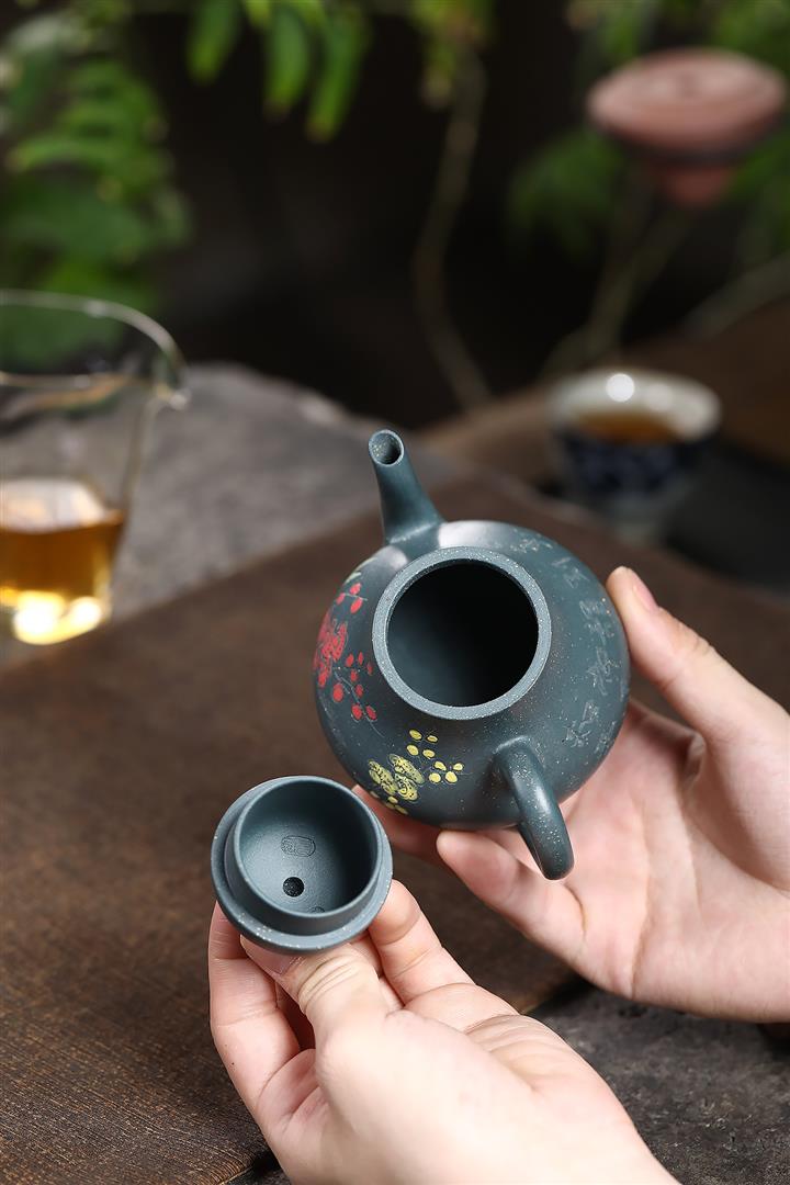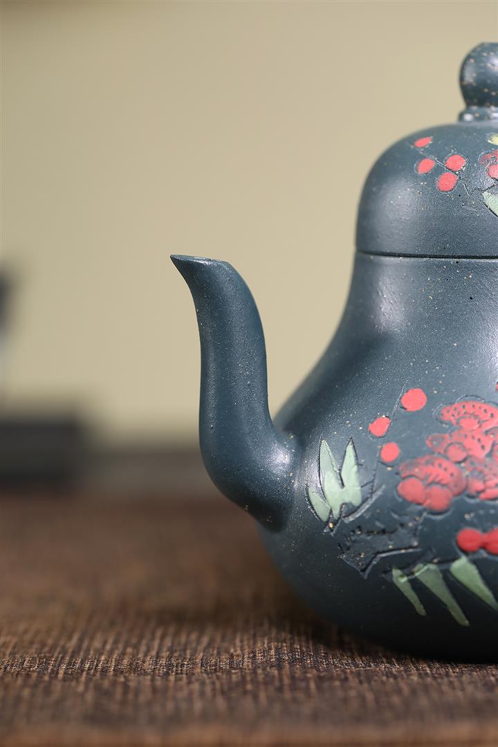 【作品介紹】此款壺形線條流暢,壺把,壺嘴,壺身壹氣呵成栩栩如生,是收藏把玩的好壺,泥料色澤古樸典雅,日久使用,漸露鋒芒,養成變化快,溫潤莊重,用其泡茶,使用的年代久,壺身就溫潤,泡出來的茶湯也就醇郁芳馨。