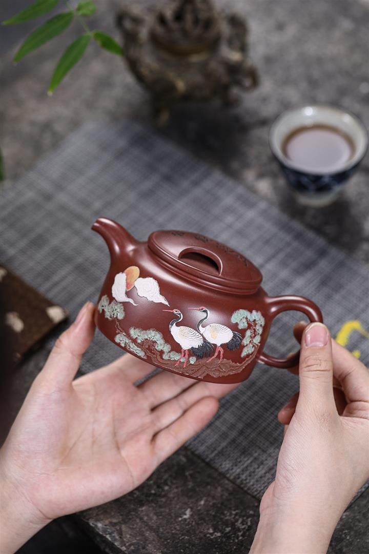 【作品介紹】此款壺形線條流暢,壺把,壺嘴,壺身壹氣呵成栩栩如生,是收藏把玩的好壺,泥料色澤古樸典雅,日久使用,漸露鋒芒,養成變化快,溫潤莊重,用其泡茶,使用的年代久,壺身就溫潤,泡出來的茶湯也就醇郁芳馨。