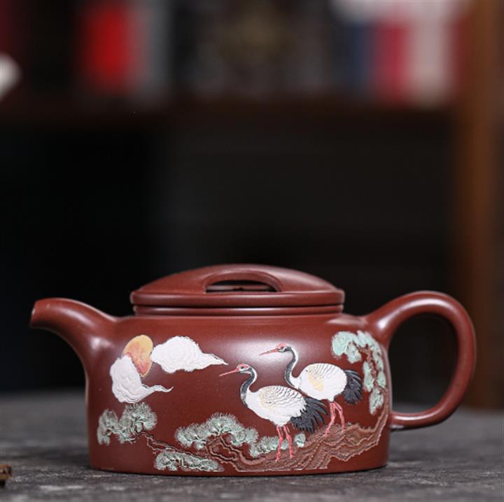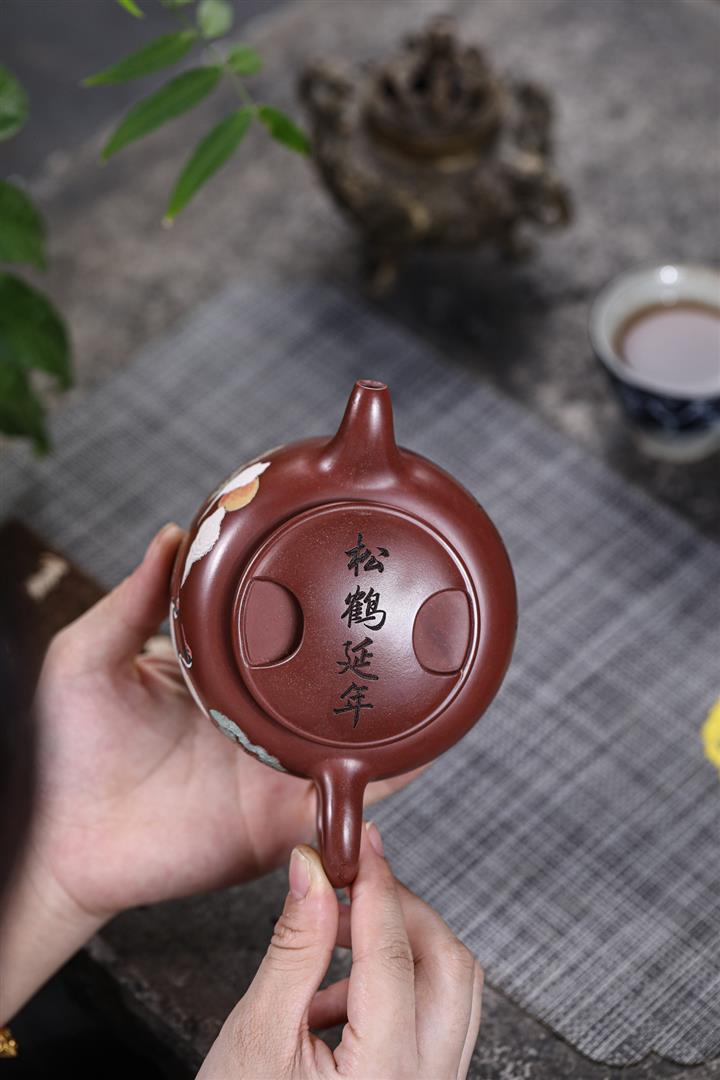480cc原礦紫泥繪刻荷花汲思茶壺POT8886