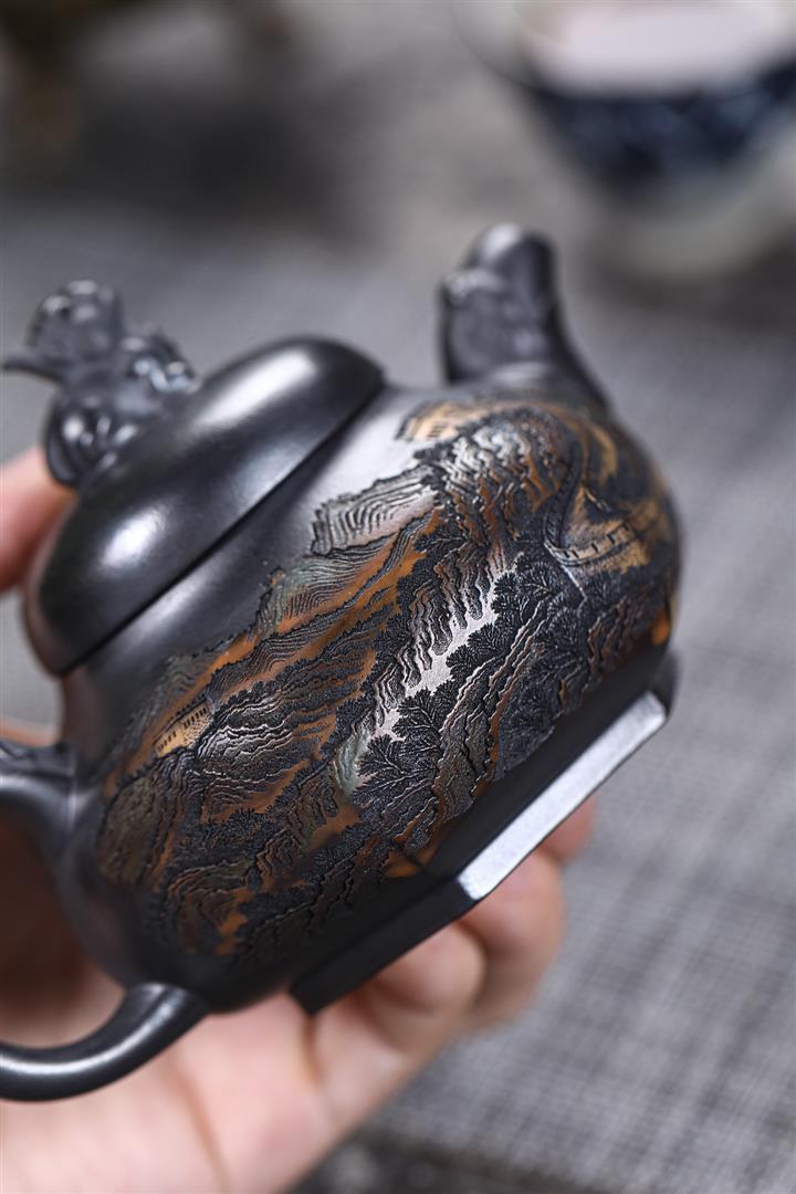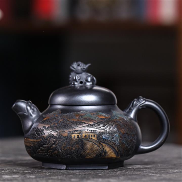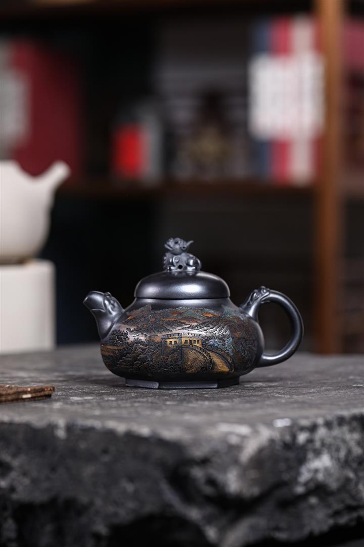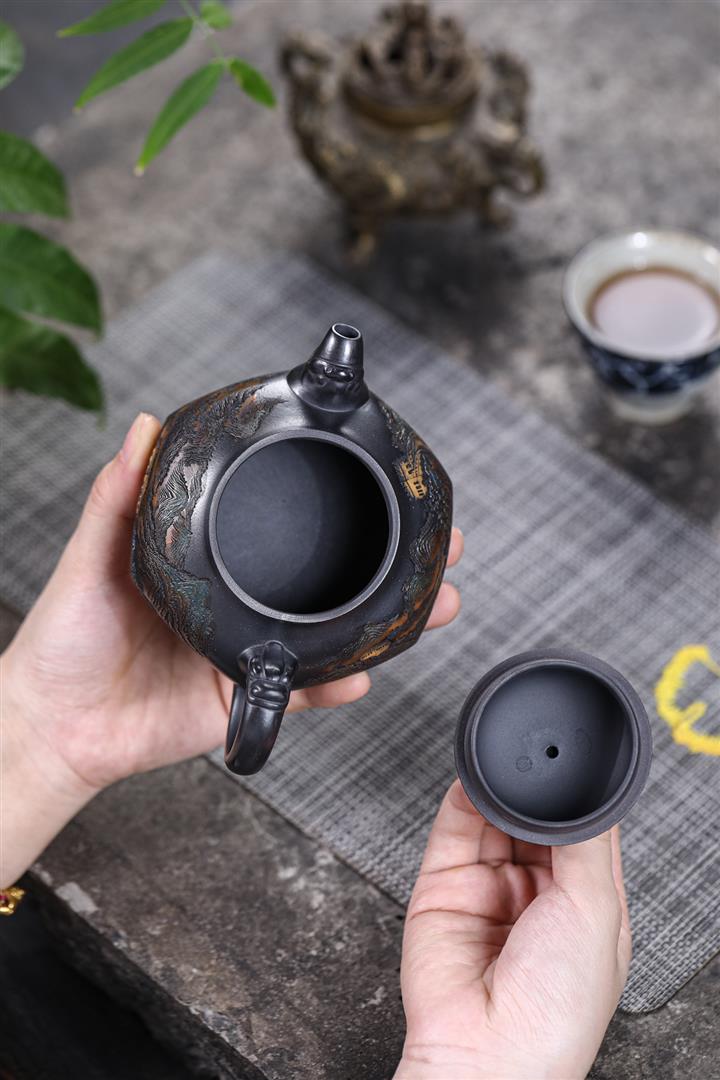 480cc原礦紫泥繪刻荷花汲思茶壺POT8886