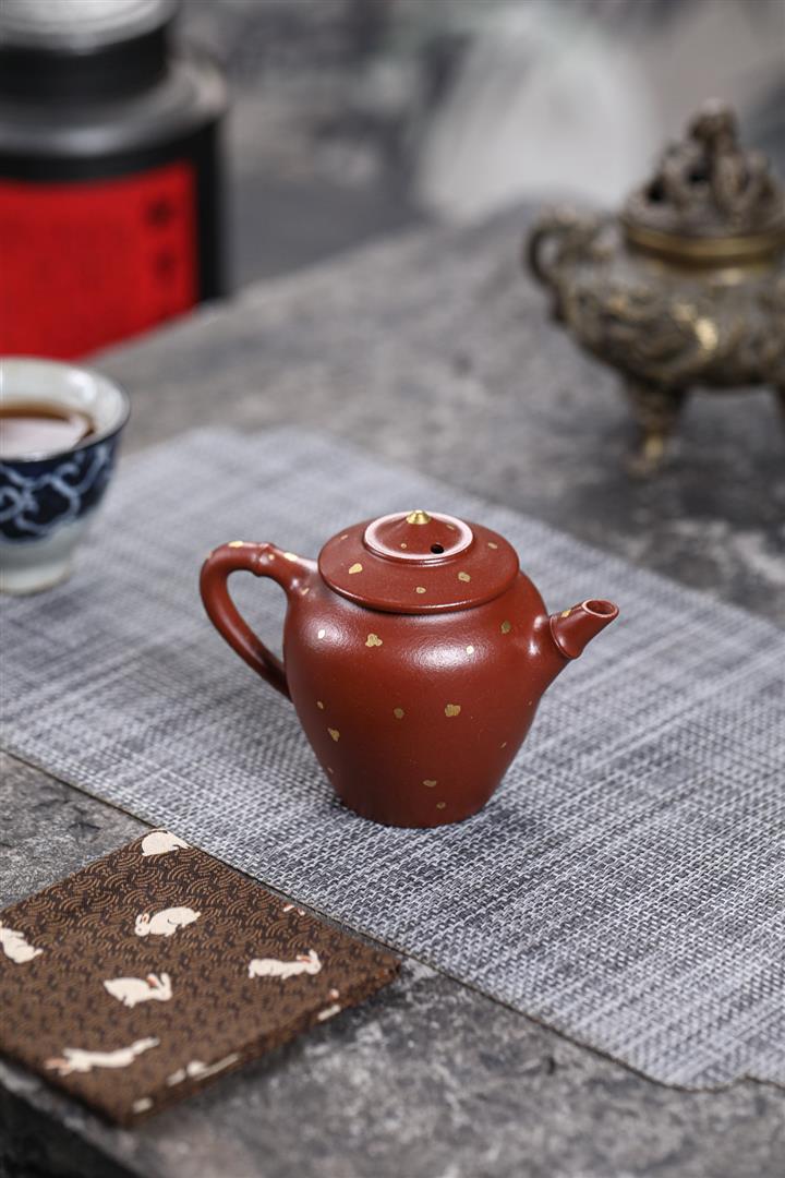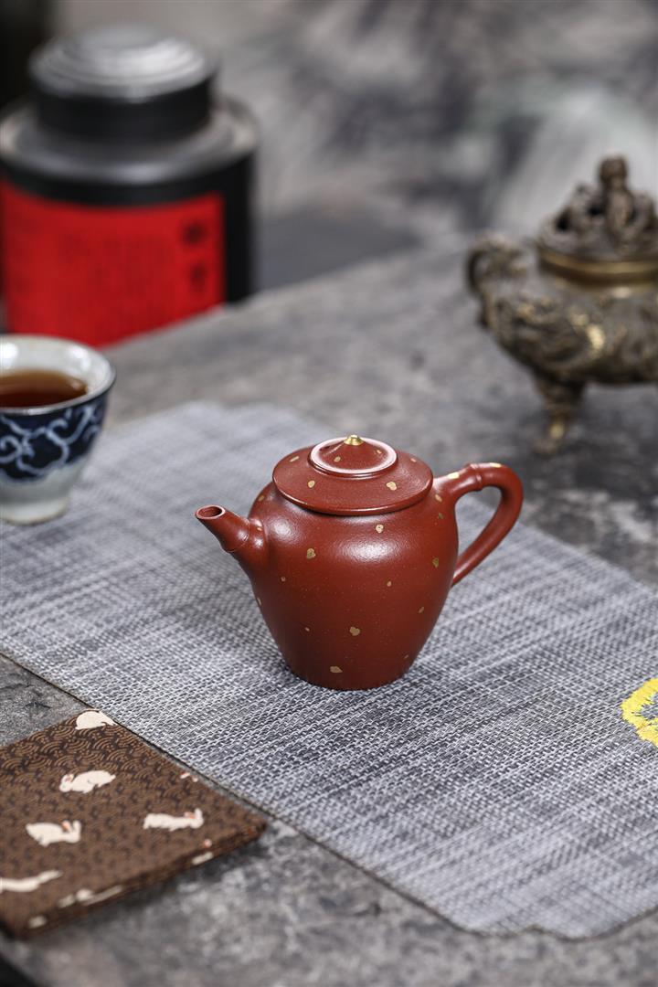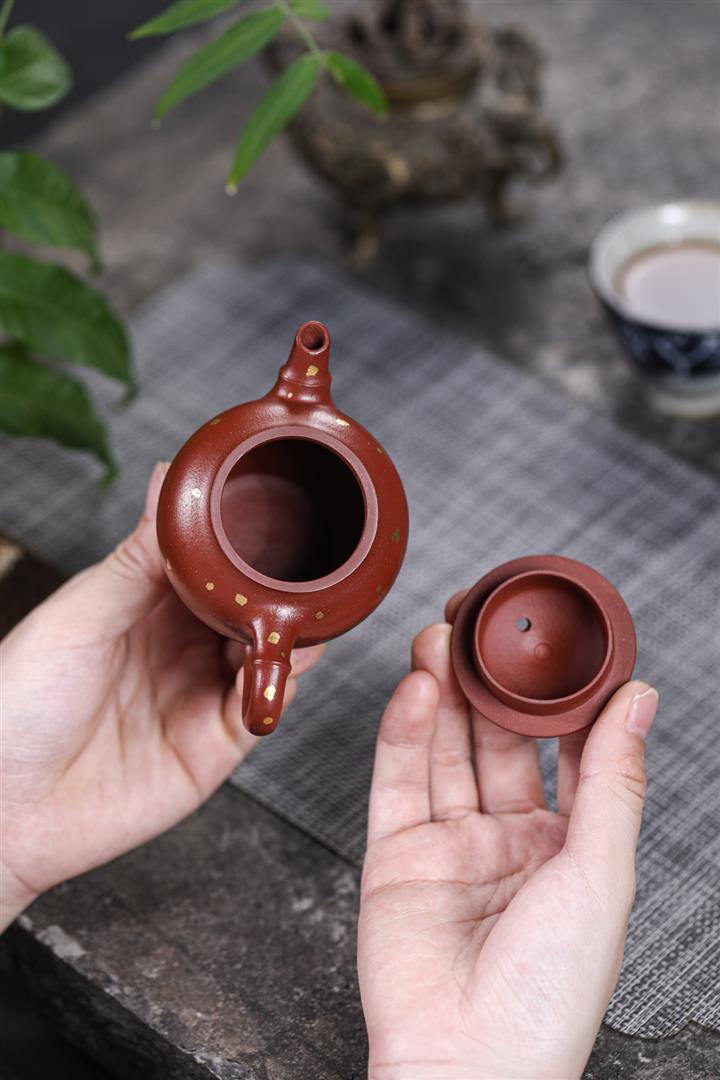 140cc原礦朱泥撒金漁翁茶壺POT8878