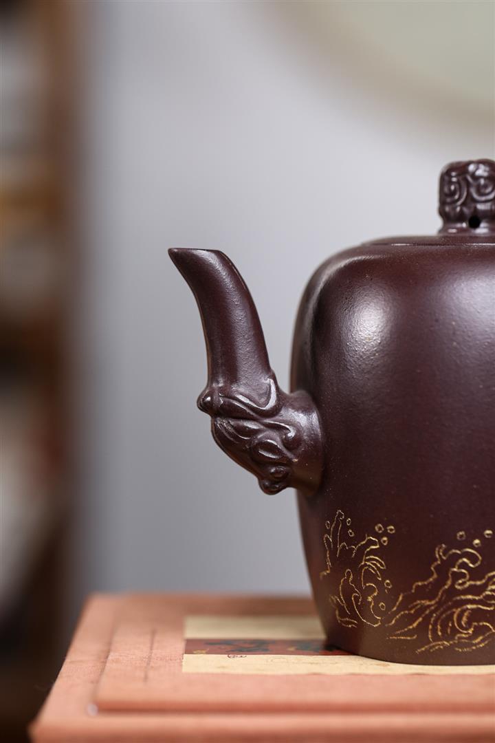 【作品介紹】此款壺形線條流暢,壺把,壺嘴,壺身壹氣呵成栩栩如生,是收藏把玩的好壺,泥料色澤古樸典雅,日久使用,漸露鋒芒,養成變化快,溫潤莊重,用其泡茶,使用的年代久,壺身就溫潤,泡出來的茶湯也就醇郁芳馨。