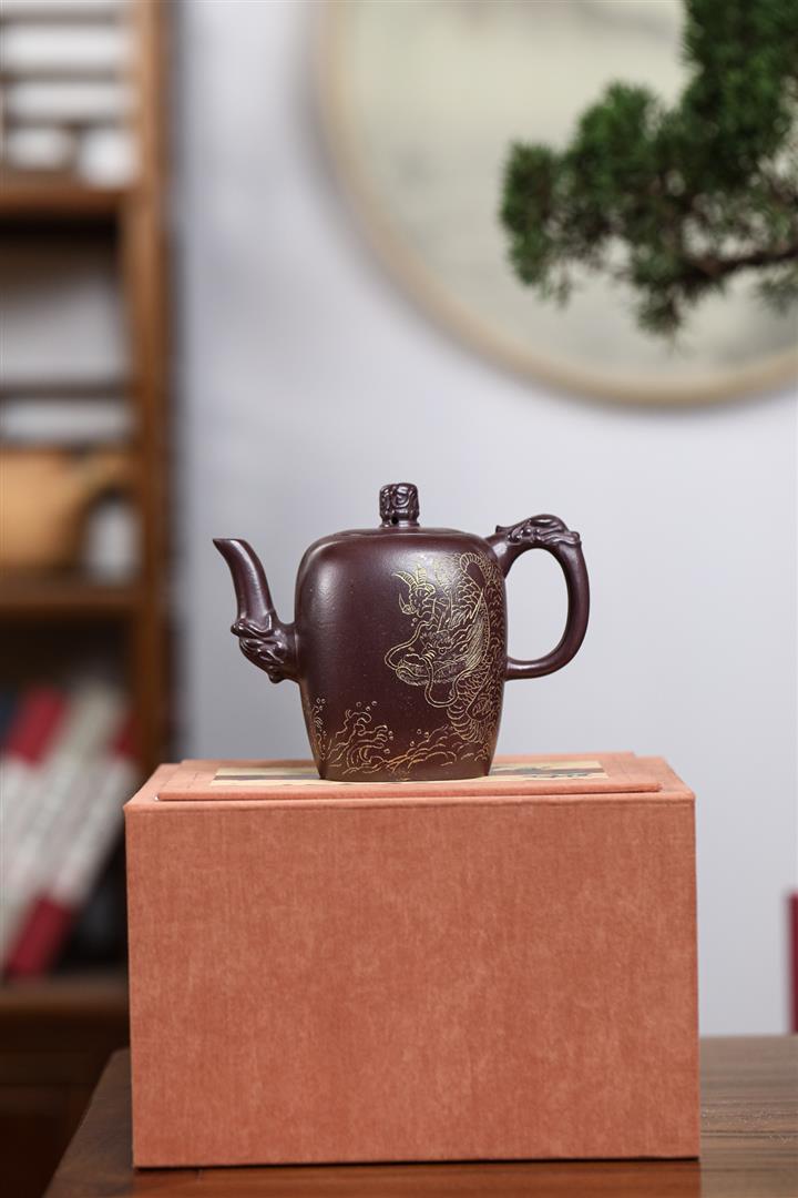 480cc原礦紫泥繪刻荷花汲思茶壺POT8886