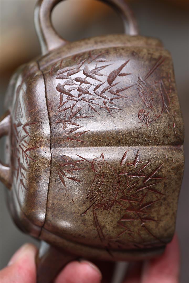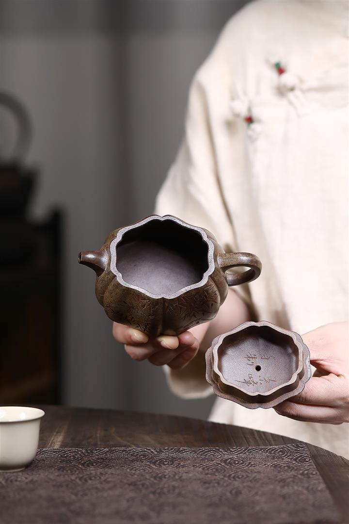 480cc原礦紫泥繪刻荷花汲思茶壺POT8886