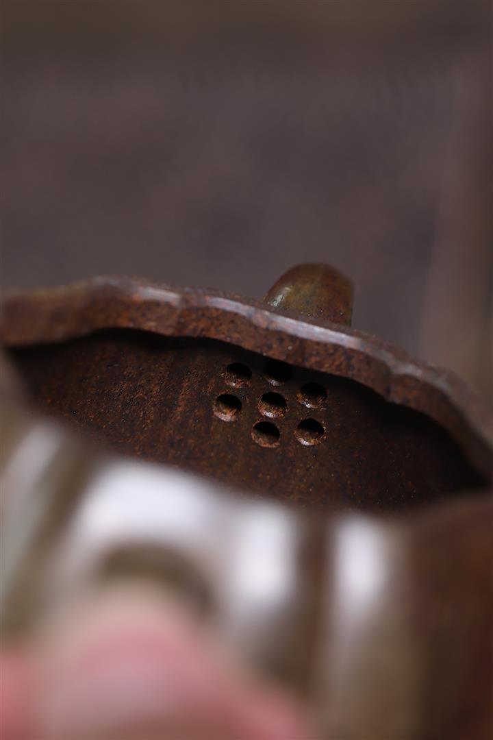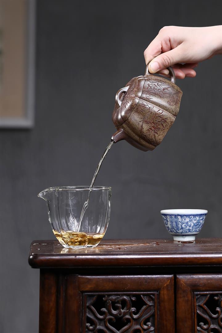 【泥料特點】砂土氣重,似淳實農民,日久使用,漸露鋒芒,養成變化,溫潤莊重。紫砂是壹種雙重氣孔結構的多孔性材質,氣孔微細,密度高。用紫砂壺沏茶,不失原味,且香不渙散,得茶之真香真味。紫砂使用越久,壺身色澤越發光亮照人,氣韻溫雅。紫砂壺長久使用器身會因撫摸擦拭,變得越發溫潤光澤。
