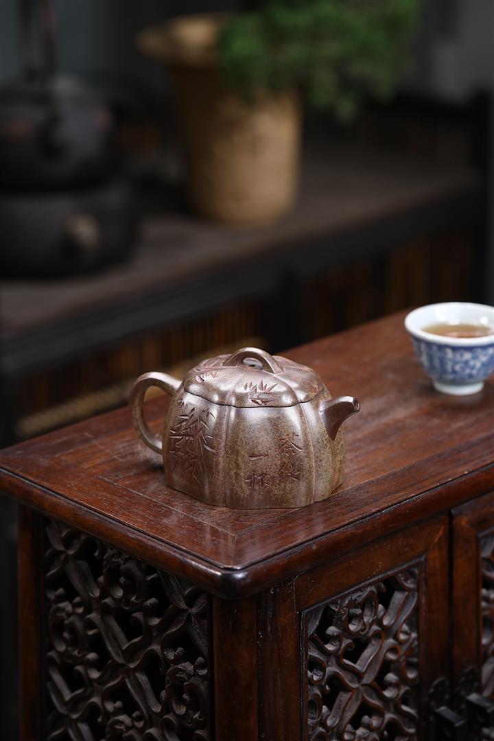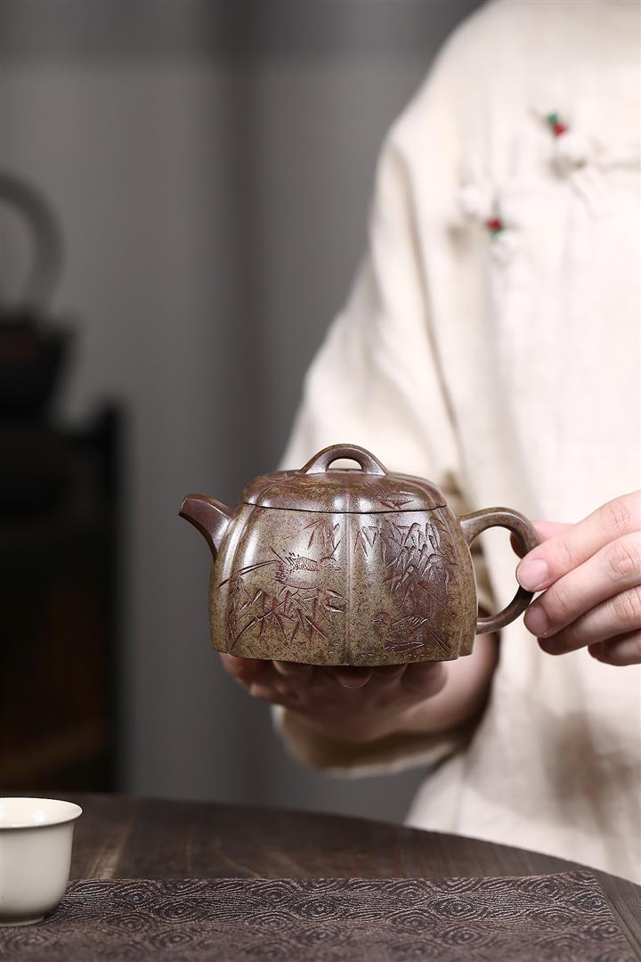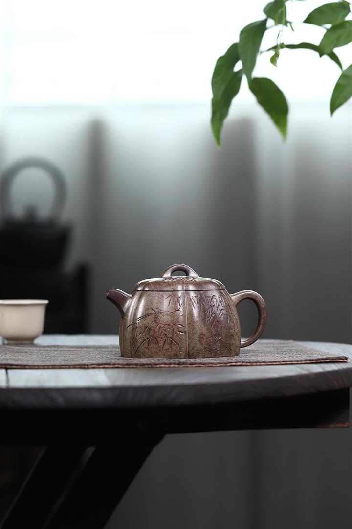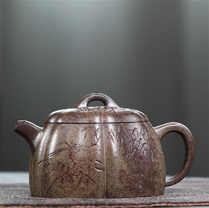 180cc 原礦降坡泥繪刻文旦茶壺POT8888