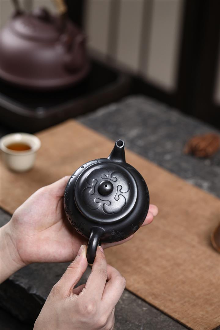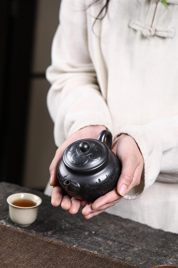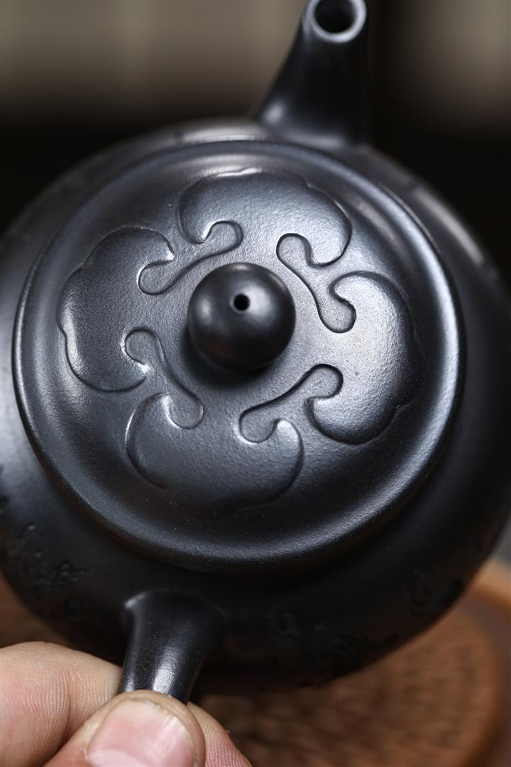 480cc原礦紫泥繪刻荷花汲思茶壺POT8886
