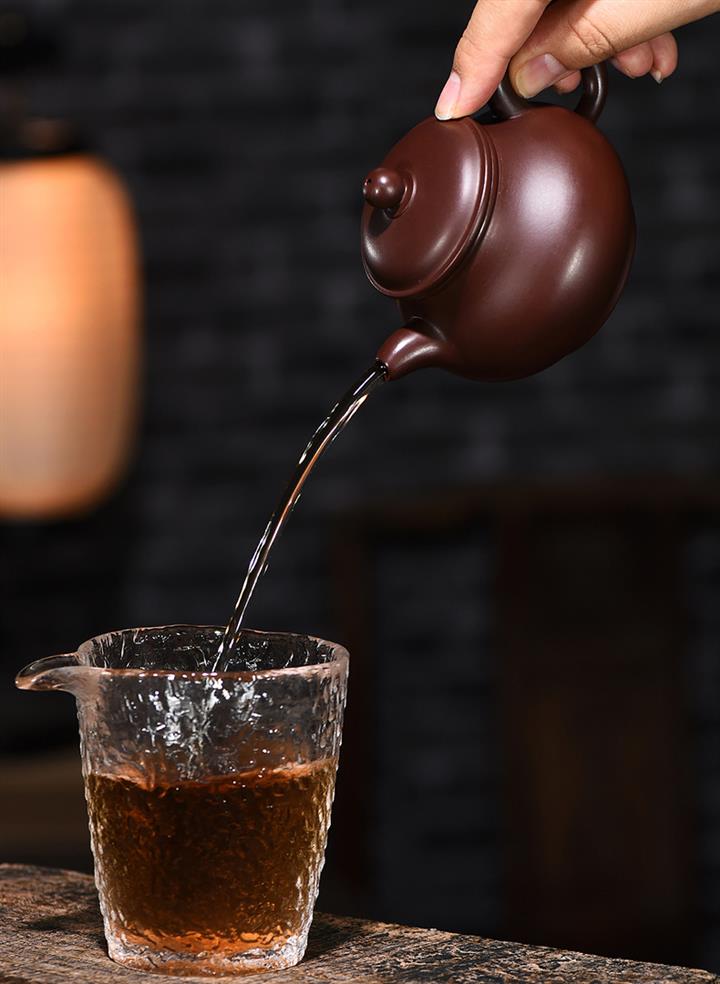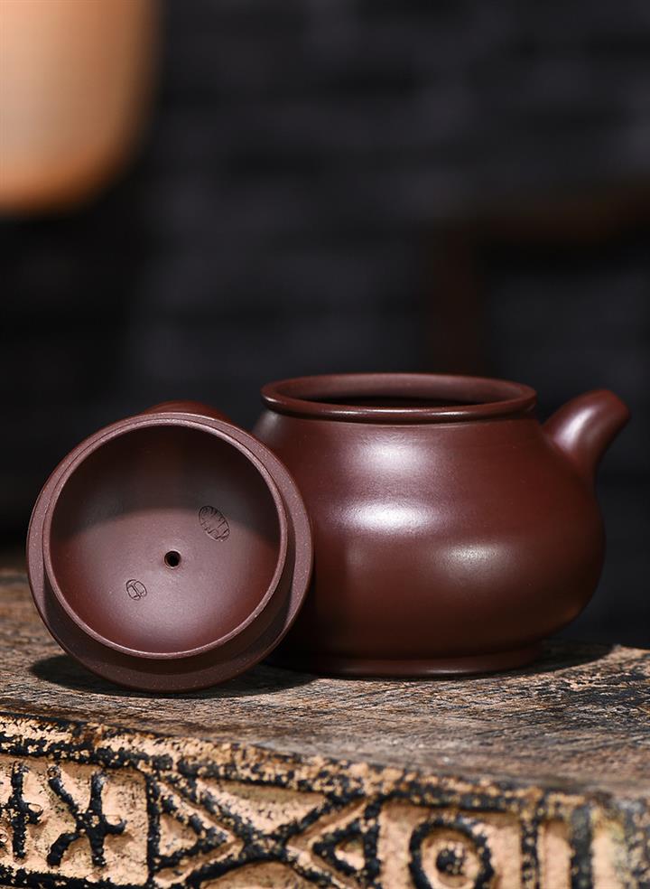 【泥料特點】砂土氣重,似淳實農民,日久使用,漸露鋒芒,養成變化,溫潤莊重。紫砂是壹種雙重氣孔結構的多孔性材質,氣孔微細,密度高。用紫砂壺沏茶,不失原味,且香不渙散,得茶之真香真味。紫砂使用越久,壺身色澤越發光亮照人,氣韻溫雅。紫砂壺長久使用器身會因撫摸擦拭,變得越發溫潤光澤。