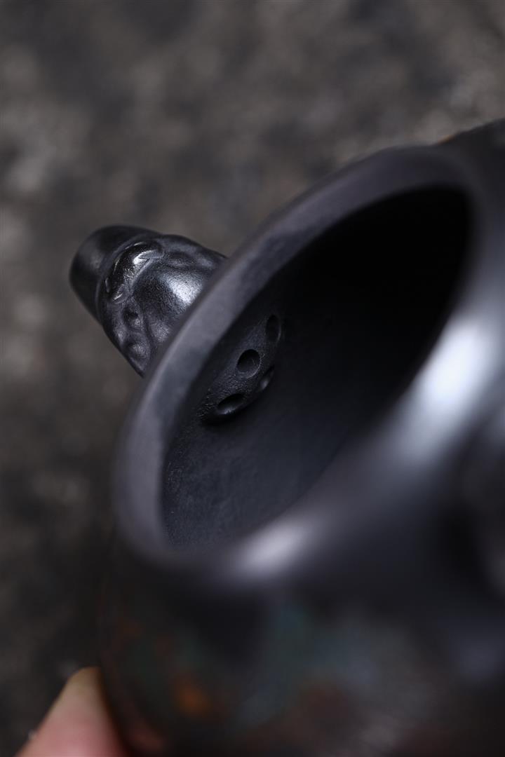 【作品介紹】此款壺形線條流暢,壺把,壺嘴,壺身壹氣呵成栩栩如生,是收藏把玩的好壺,泥料色澤古樸典雅,日久使用,漸露鋒芒,養成變化快,溫潤莊重,用其泡茶,使用的年代久,壺身就溫潤,泡出來的茶湯也就醇郁芳馨。
