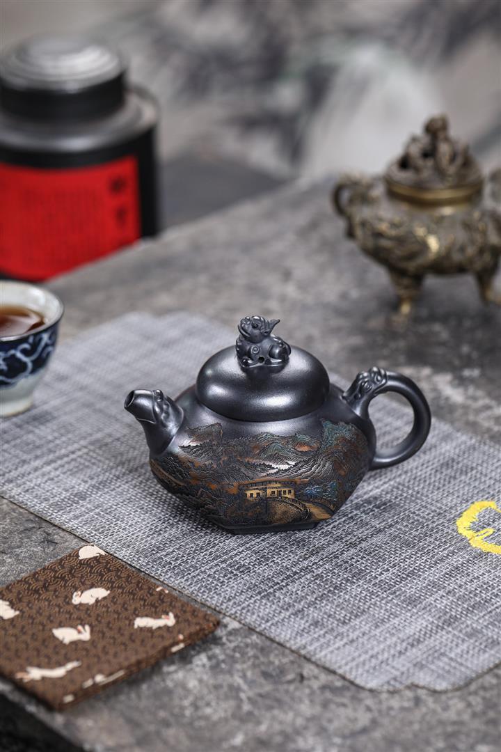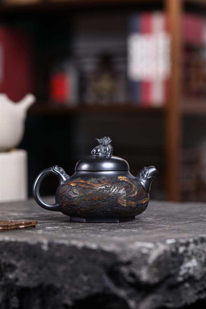 220cc原礦龍血砂刻梅花茶壺POT8902