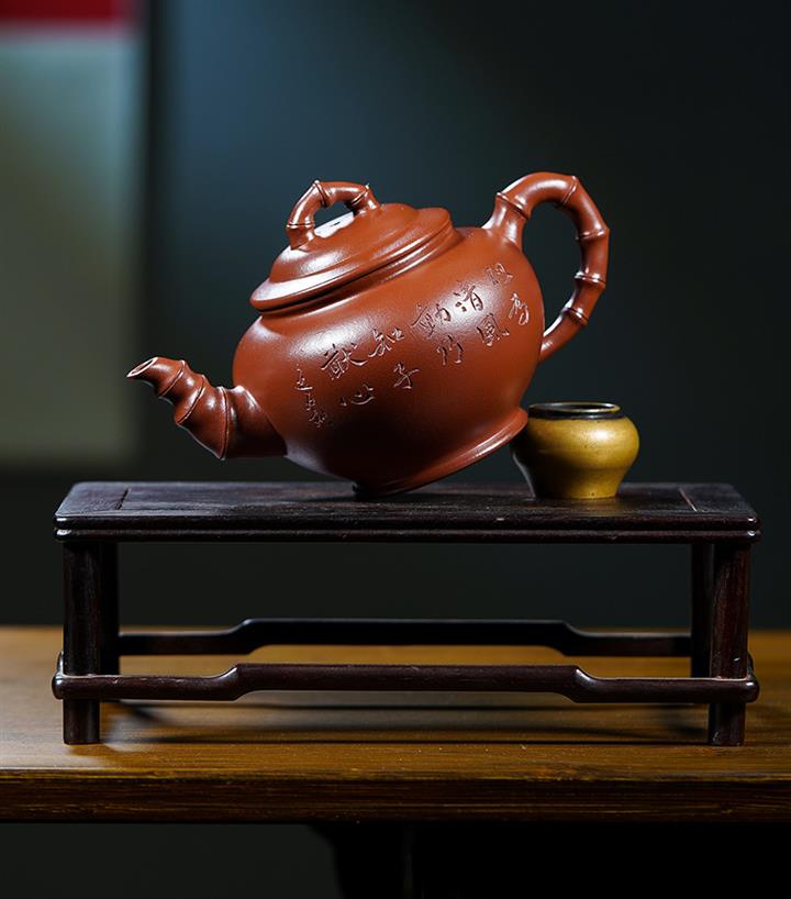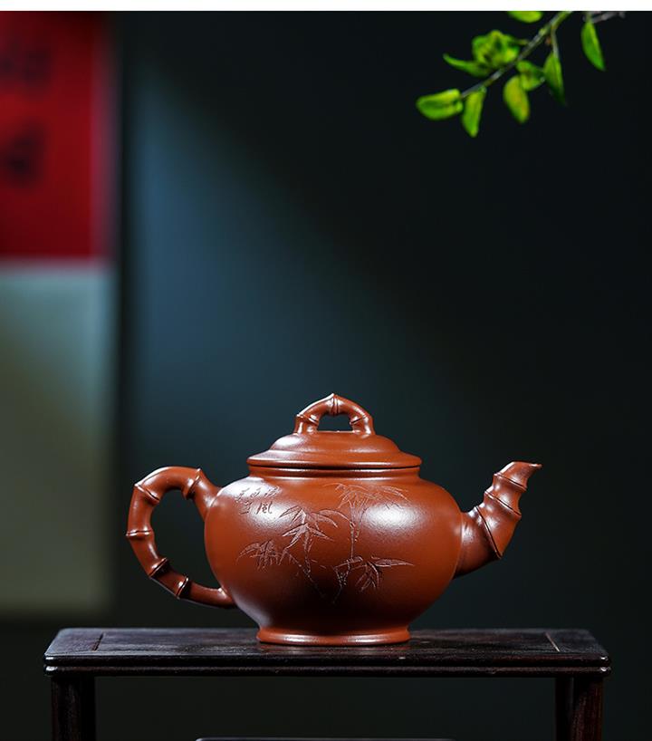 380cc原礦紫砂底槽清竹報平安茶壺POT8901