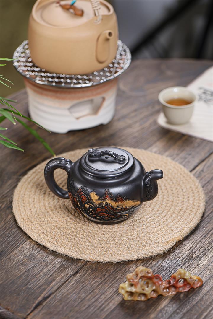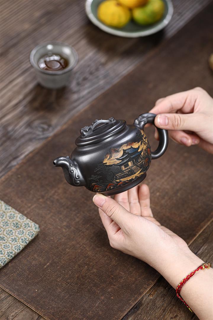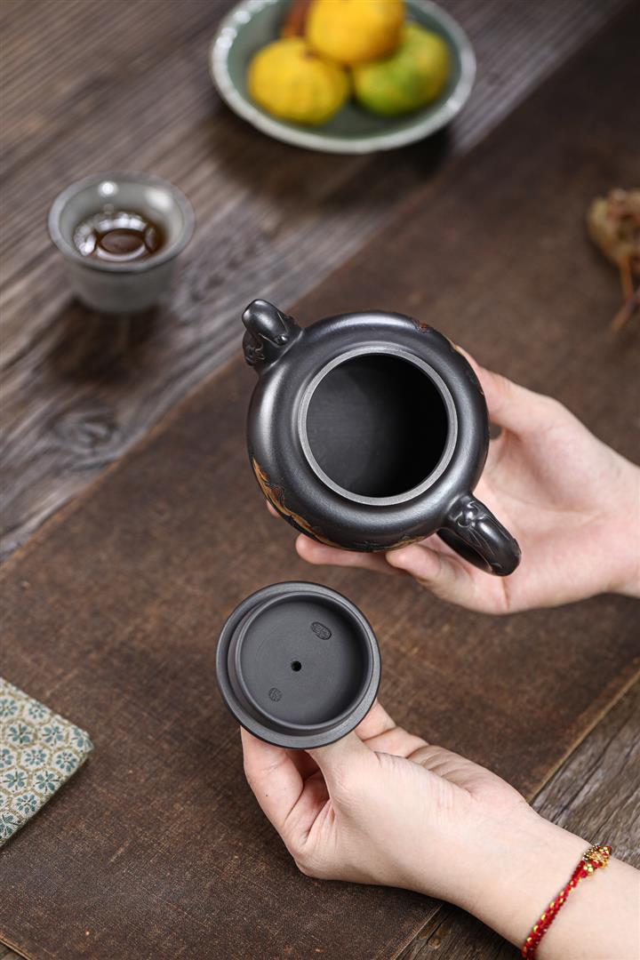 【作品介紹】此款壺形線條流暢,壺把,壺嘴,壺身壹氣呵成栩栩如生,是收藏把玩的好壺,泥料色澤古樸典雅,日久使用,漸露鋒芒,養成變化快,溫潤莊重,用其泡茶,使用的年代久,壺身就溫潤,泡出來的茶湯也就醇郁芳馨。