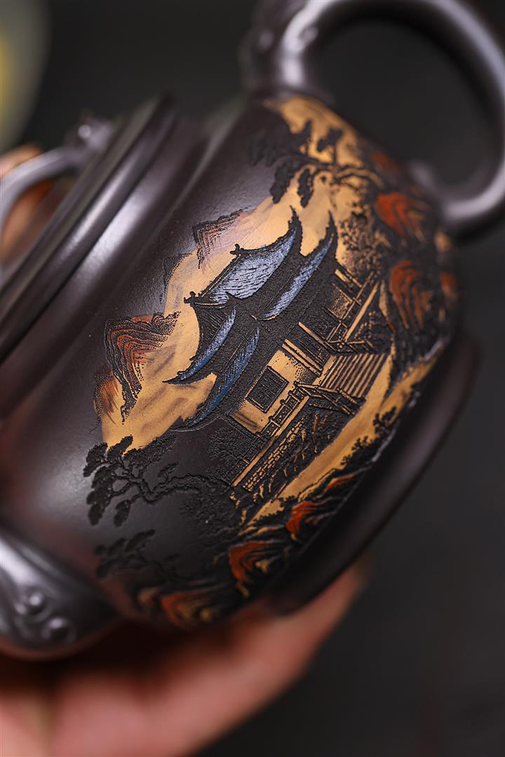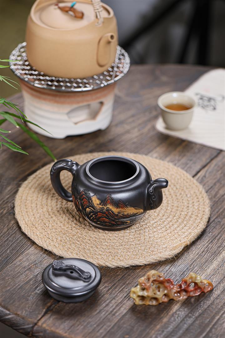 330cc原礦龍血砂孔雀振羽半月茶壺POT8913
