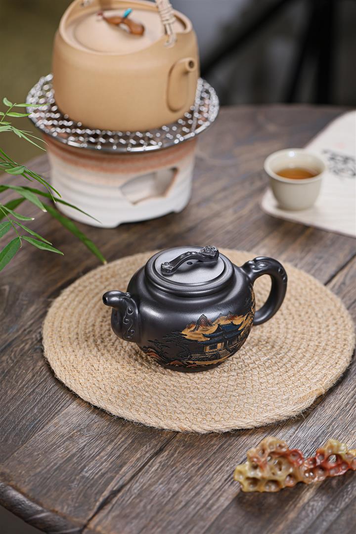 250cc原礦雲霧沈香筋紋線圓茶壺POT8908