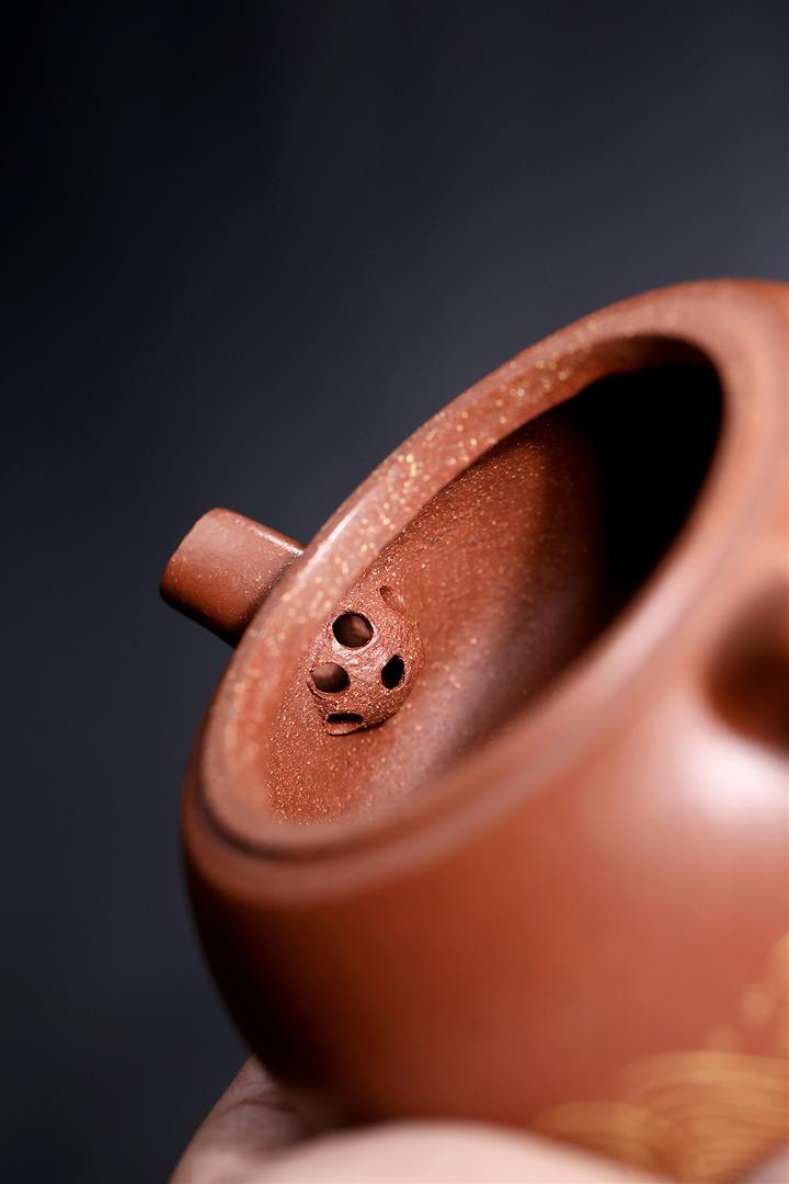 【作品介紹】此款壺形線條流暢,壺把,壺嘴,壺身壹氣呵成栩栩如生,是收藏把玩的好壺,泥料色澤古樸典雅,日久使用,漸露鋒芒,養成變化快,溫潤莊重,用其泡茶,使用的年代久,壺身就溫潤,泡出來的茶湯也就醇郁芳馨。