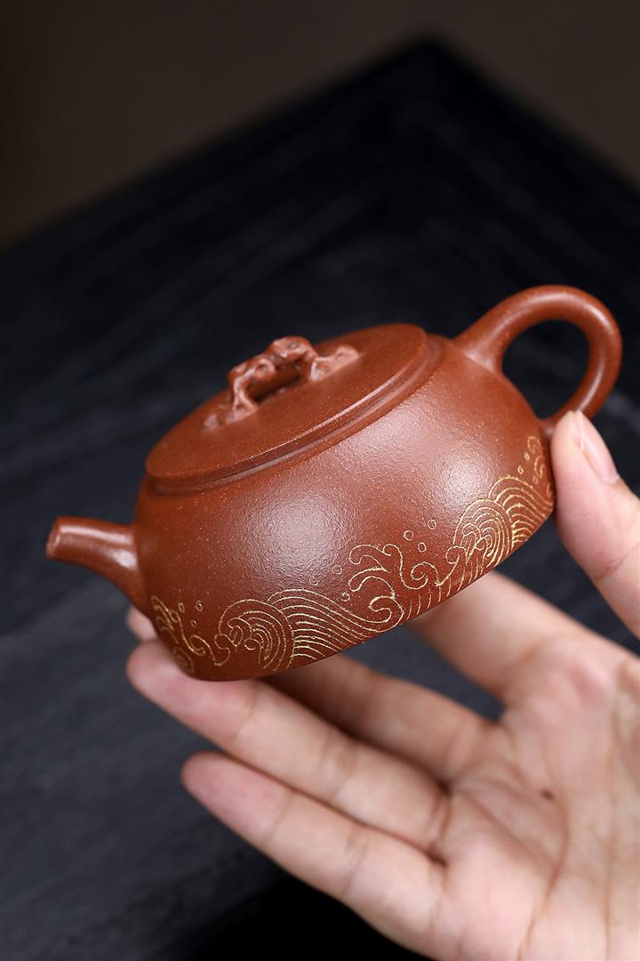 330cc原礦龍血砂孔雀振羽半月茶壺POT8913