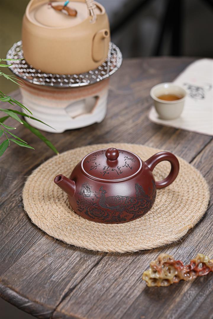 330cc原礦龍血砂孔雀振羽半月茶壺POT8913