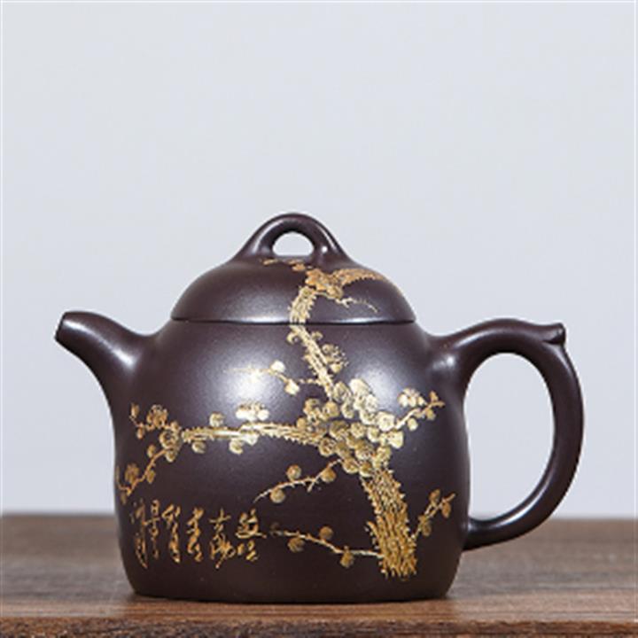 250cc原礦百目紫泥金刻暗香秦權茶壺POT8927