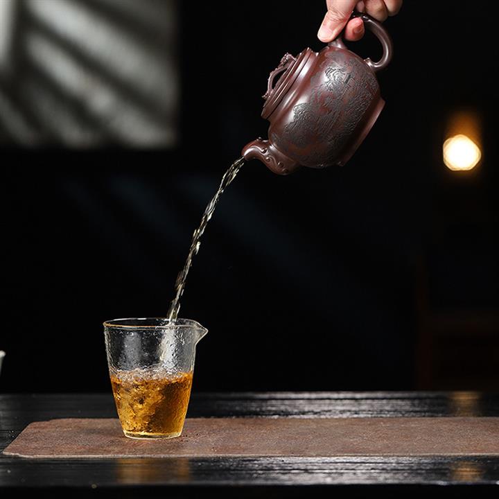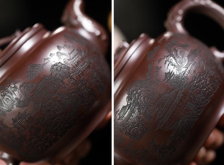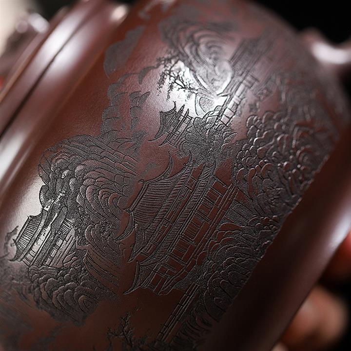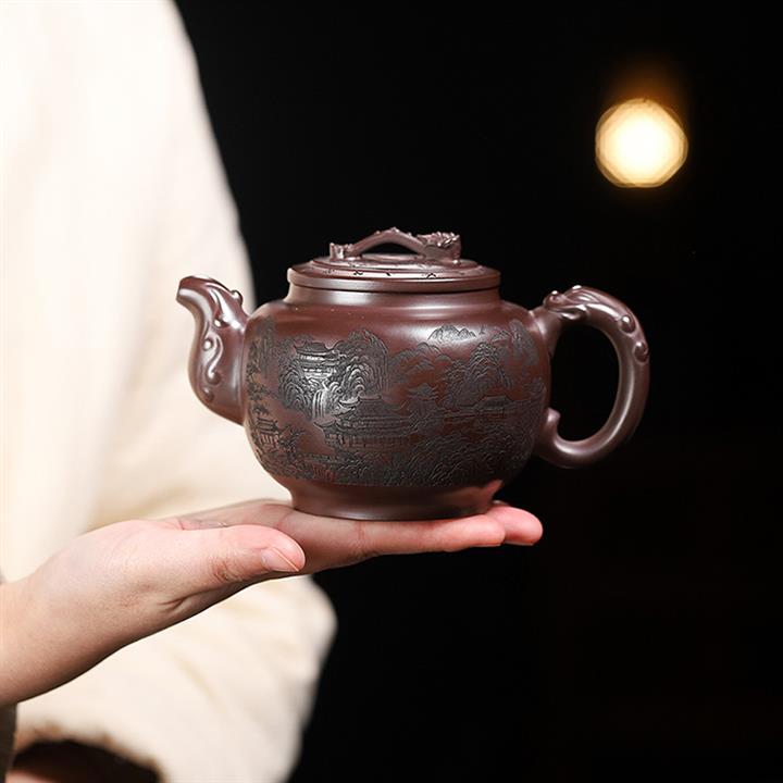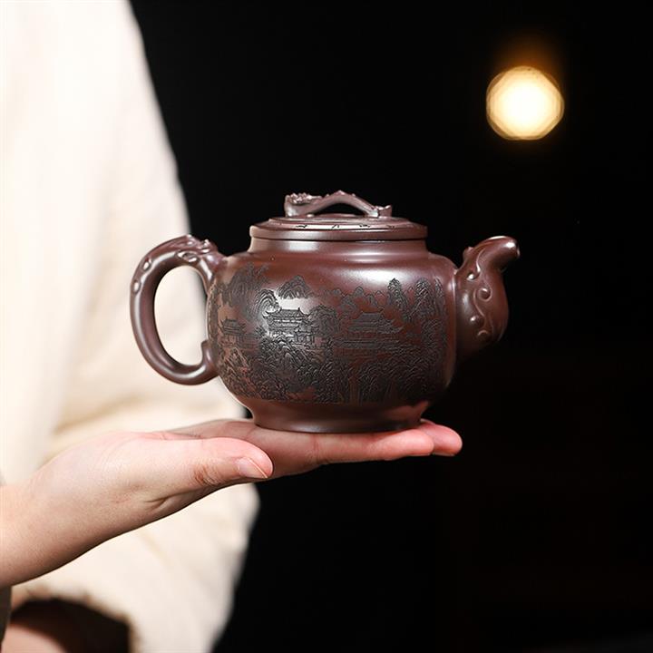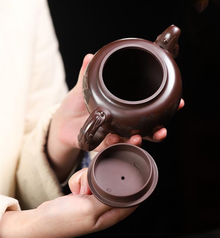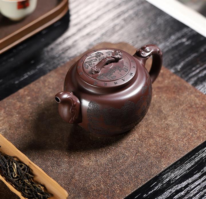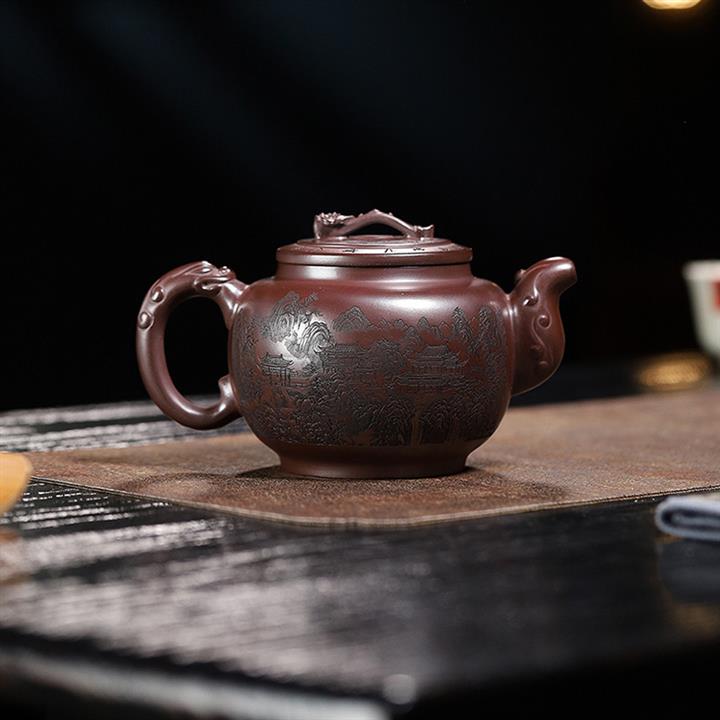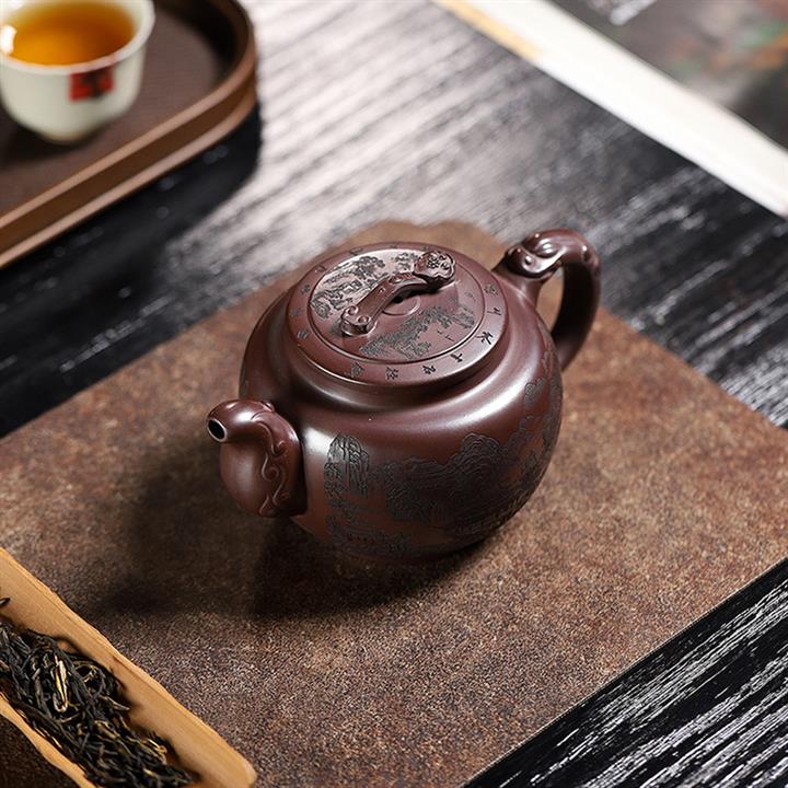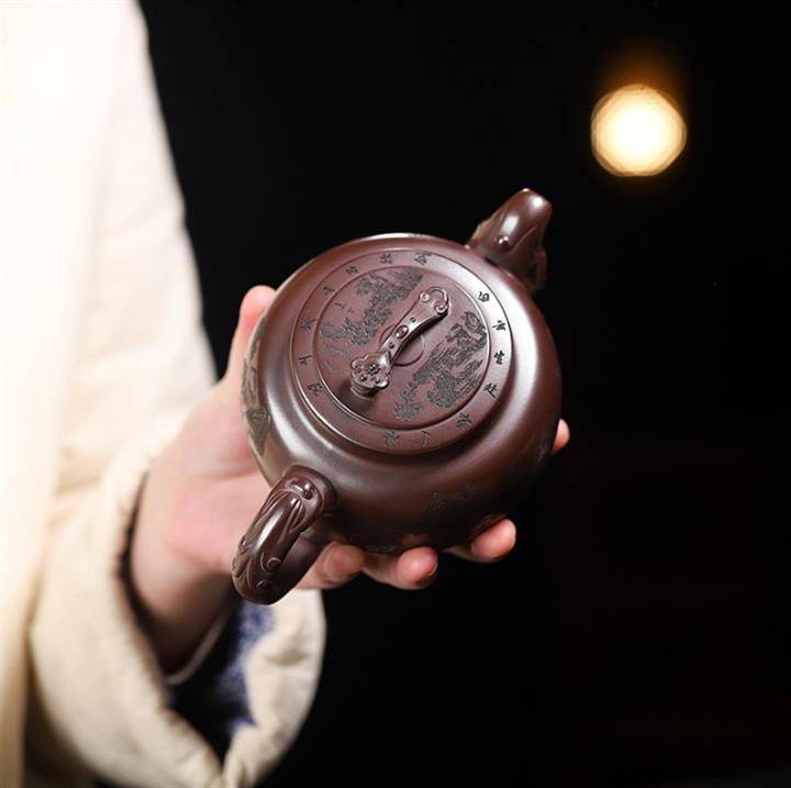 250cc原礦百目紫泥金刻暗香秦權茶壺POT8927