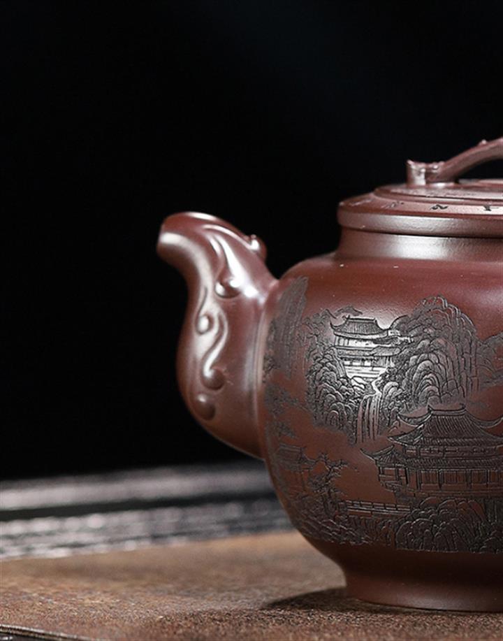 160cc原礦大紅袍泥繪秋水茶壺POT8929