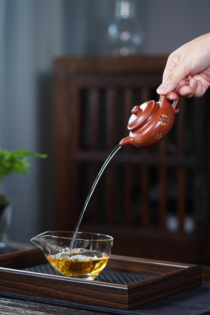 【泥料特點】砂土氣重,似淳實農民,日久使用,漸露鋒芒,養成變化,溫潤莊重。紫砂是壹種雙重氣孔結構的多孔性材質,氣孔微細,密度高。用紫砂壺沏茶,不失原味,且香不渙散,得茶之真香真味。紫砂使用越久,壺身色澤越發光亮照人,氣韻溫雅。紫砂壺長久使用器身會因撫摸擦拭,變得越發溫潤光澤。