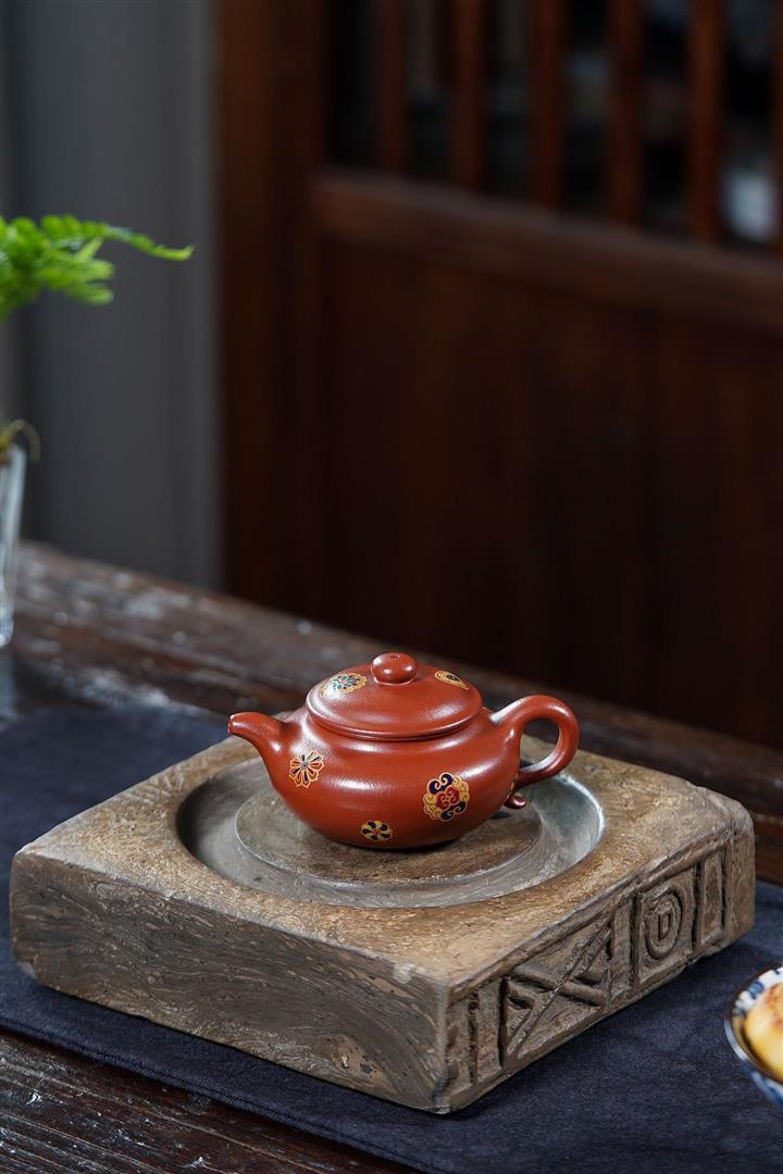 140cc原礦大紅袍描金繡球仿古茶壺POT8923