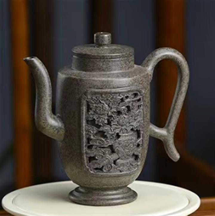 350cc原礦開花泥鏤空汲泉茶壺POT8933