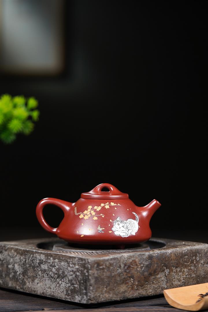 160cc原礦大紅袍泥繪秋水茶壺POT8929