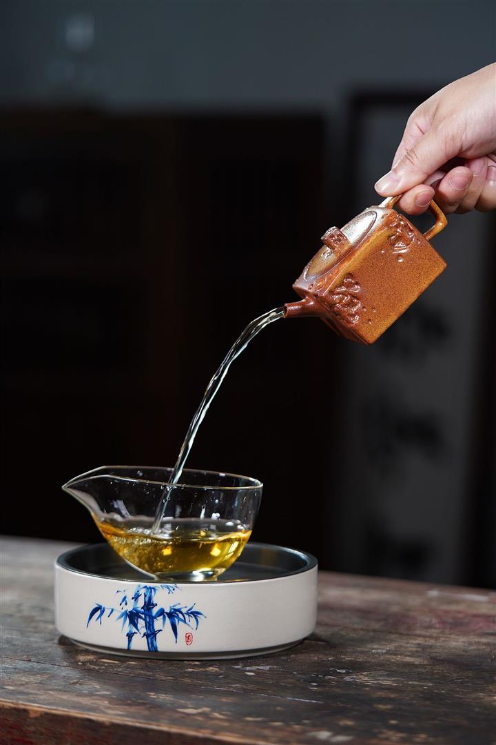 【泥料特點】砂土氣重,似淳實農民,日久使用,漸露鋒芒,養成變化,溫潤莊重。紫砂是壹種雙重氣孔結構的多孔性材質,氣孔微細,密度高。用紫砂壺沏茶,不失原味,且香不渙散,得茶之真香真味。紫砂使用越久,壺身色澤越發光亮照人,氣韻溫雅。紫砂壺長久使用器身會因撫摸擦拭,變得越發溫潤光澤。