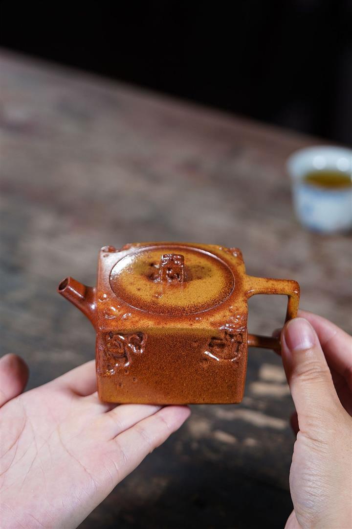 180cc原礦段泥火燒雲太湖石四方茶壺POT8925